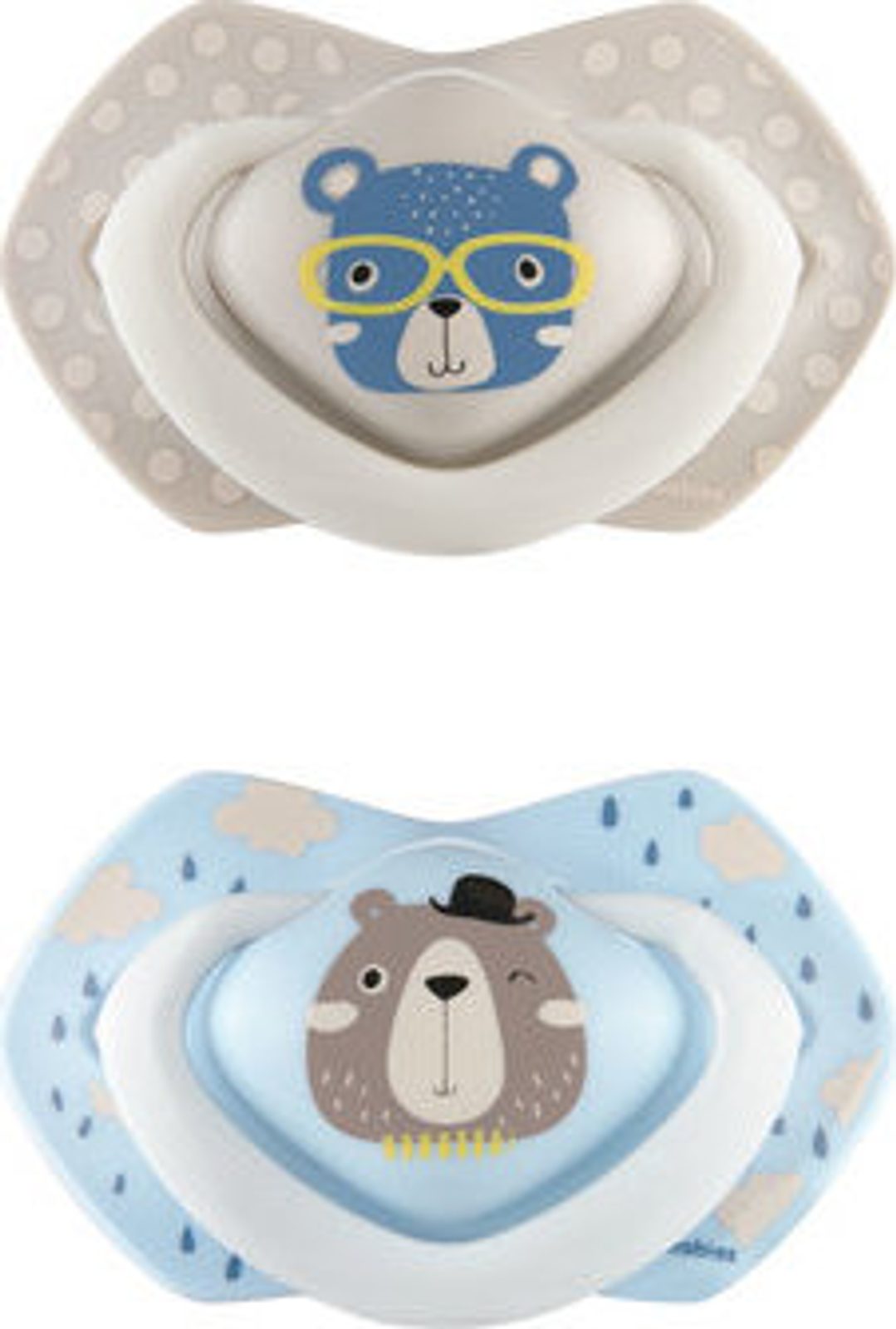2 ks, symetrický, silikonový dudlík, barva: modrá/šedá