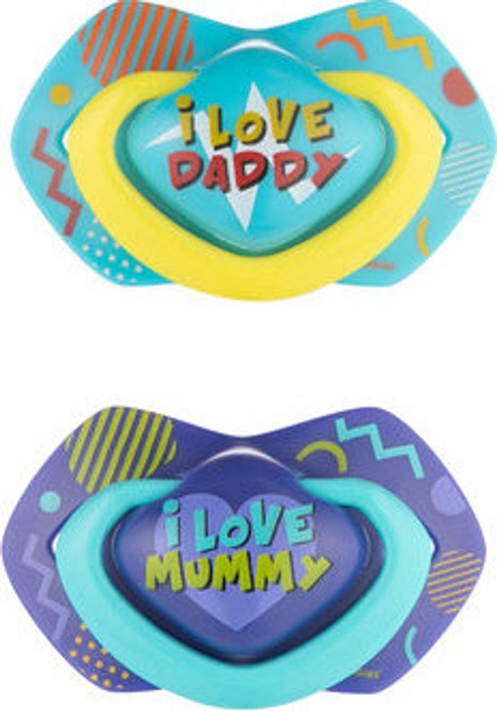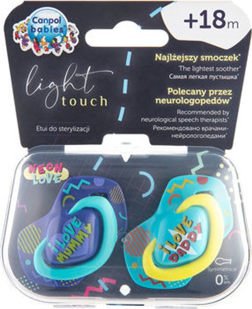 Canpol Babies Canpol Babies 2 ks symetrických silikonových dudlíků, +18m, Neon Love Baby, modré