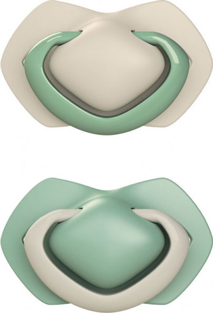 Canpol Babies Canpol Babies Sada 2 ks symetrických silikonových dudlíků, 6-18m+, PURE COLOR zelený/sivý