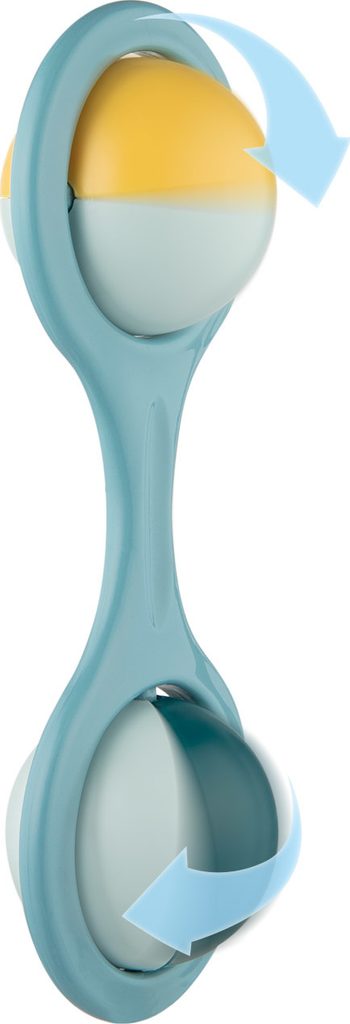 Atraktivní tvary a intenzivní barvy zaujmou pozornost dítěte a podporují vývoj jeho smyslů. Chrastítko je vyrobeno z bezpečných materiálů bez ostrých hran.