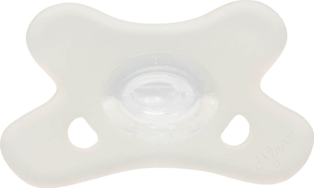 100% silikonový dudlík vaše miminko uvolní a uklidní. Dudlík je výjimečně měkký a lehký a neobtiskává se na obličeji dítěte. Vyrobeno ze 100% hypoalergenního silikonu - bez chuti a zápachu. Měkká elastická špička symetrického tvaru dobře padne do úst dítěte bez ohledu na to, jak je umístěna, a její tvar je považován za nejpřirozenější. Symetrická špička dudlíku je pro většinu dětí nejsnáze přijatelná. Vyrobeno výhradně z jednoho kusu pružného silikonu, který je velmi odolný, nedeformuje se, nevysychá a nebarví. Dudlík je příjemný k pokožce díky hedvábně jemnému silikonovému povlaku. Speciálně navržený tvar štítku se dobře přizpůsobí obličeji dítěte a umožňuje snadné dýchání nosem.