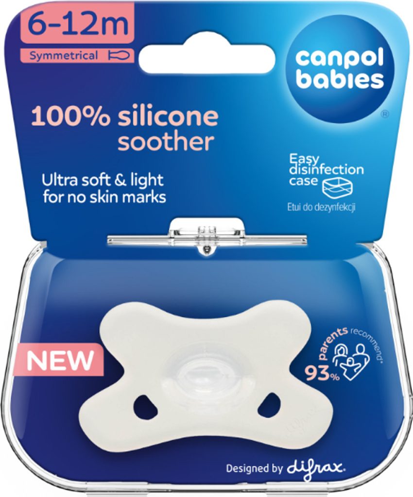 100% silikonový symetrický dudlík Canpol babies je výjimečně měkký a lehký, neobtiskává se na obličeji dítěte. Hygienický a bezpečný - snadno se udržuje v čistotě.