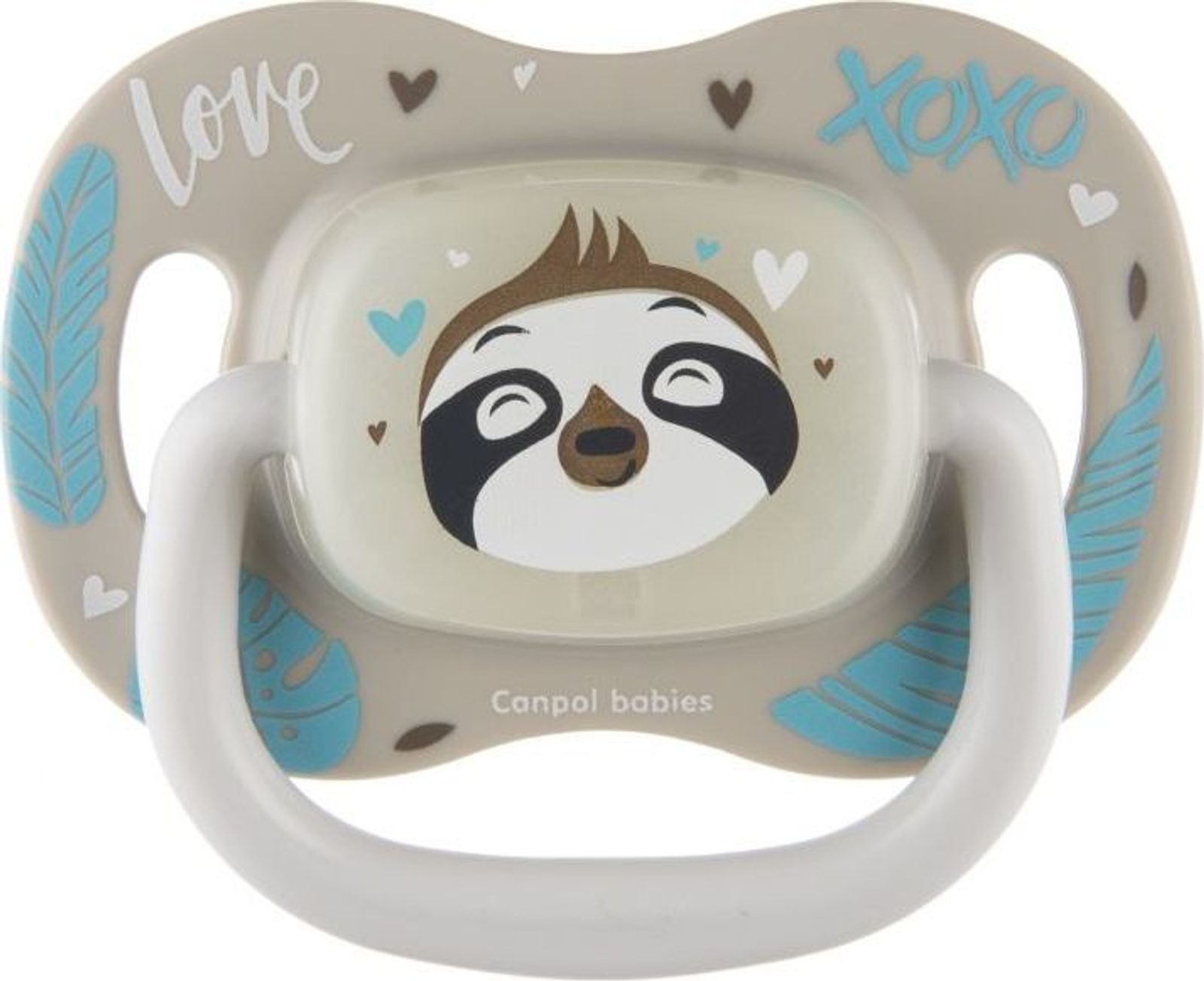 CANPOL babies Dudlík silikonový symetrický EXOTIC ANIMALS 6-18m 1ks lenochod