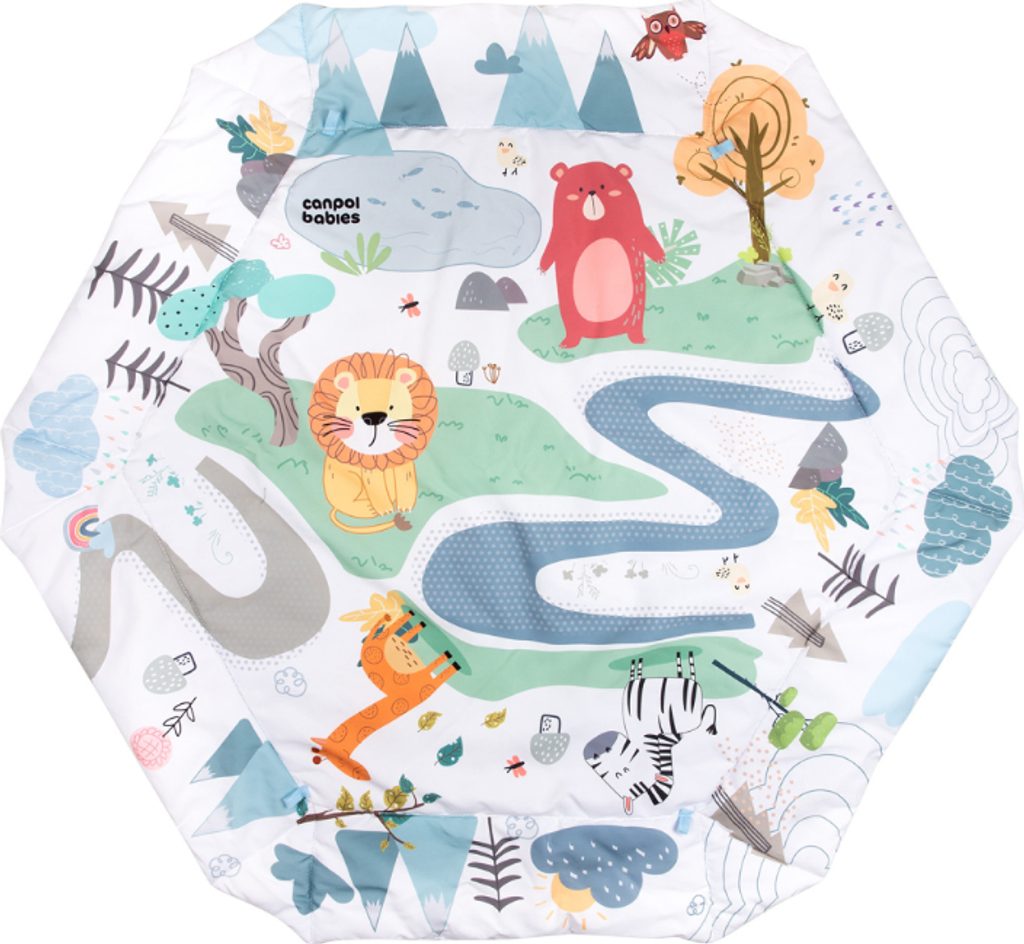 Podložka na hraní je vyrobena z měkké, barevné, vycpané látky.
