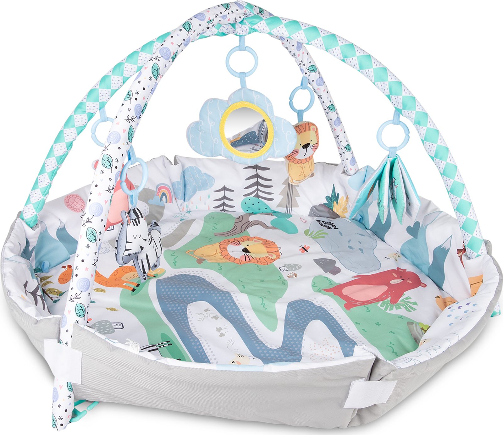 Roste s dítětem: vzdělávací podložka s hračkami, ohrádka a podložka bez příslušenství.