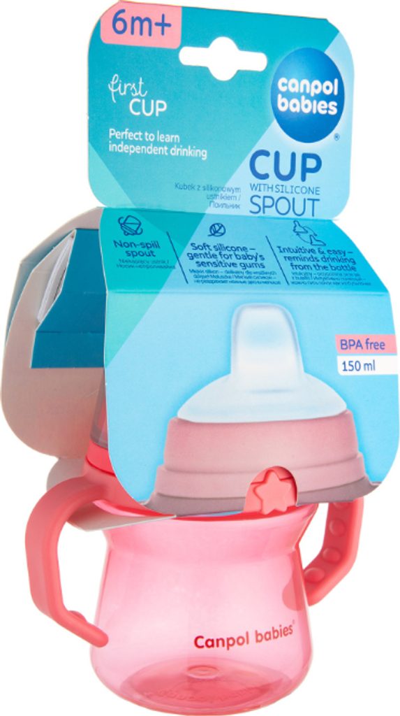 Výjimečně měkké pítko je vyrobeno z jemného silikonu, který je bezpečný pro citlivé dásně dítěte. Hrneček je lehký a má ergonomickou profilovanou strukturu. Pohodlné rukojeti usnadňují držení hrnečku v malých dětských ručičkách. Malý počet prvků usnadňuje sestavování a čištění – hrnek nemá žádná zbytečná zákoutí, díky čemuž lze všechny části rychle umýt. Silikonové pítko lze také sterilizovat párou. Canpol babies nevylévací hrneček se silikonovým pítkem o objemu 150 ml je průhledný, což umožňuje kontrolovat množství tekutiny přijímané dítětem.