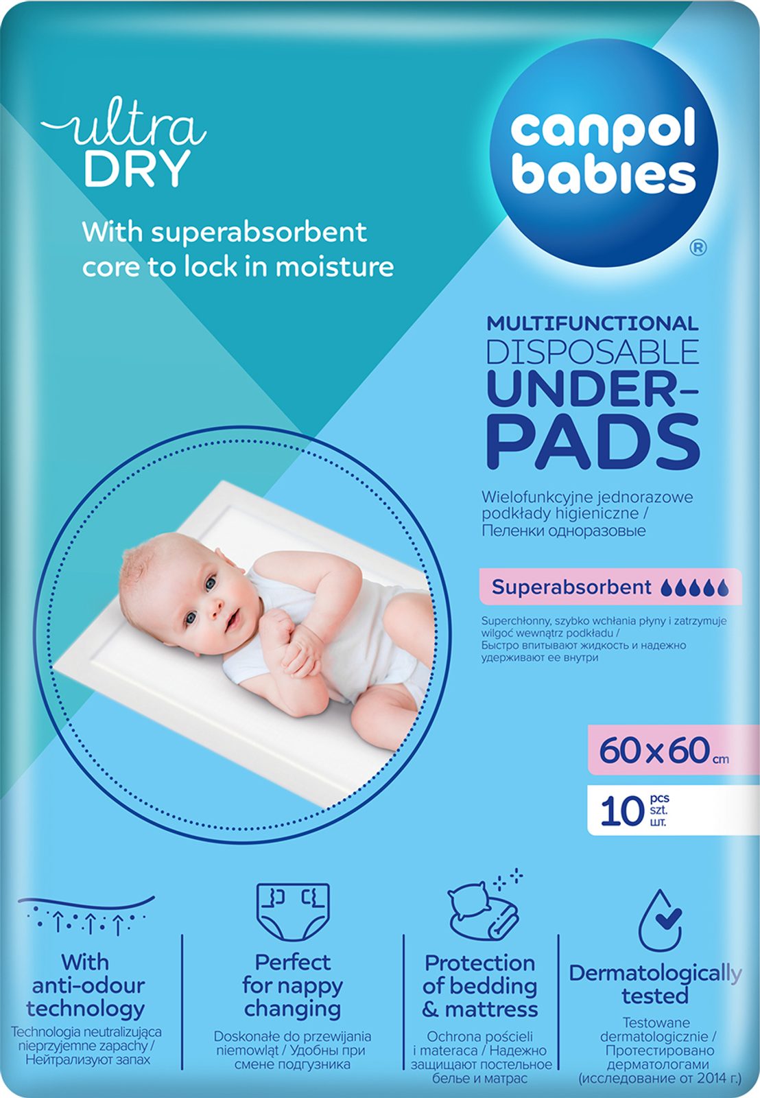 Multifunkční hygienické podložky Canpol babies s voděodolnou ochrannou vrstvou na spodní straně vložky jsou perfektní pro mnoho situací. Super-absorpční podložka rychle absorbuje tekutiny a zadržuje vlhkost uvnitř podložky. Hygienické podložky jsou pro ženy v poporodním období nezbytné. Jsou užitečné při přebalování miminka, při cestování, při návštěvě kliniky nebo jako ochrana matrace (protékající plena, říhání apod.) a při učení se svlékat.