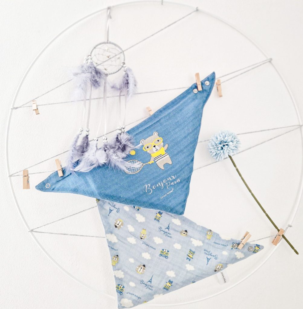 Praktický slintáček s barevnými potisky je krásným doplňkem dětské výbavy. Sada obsahuje 2 kusy slintáčků.