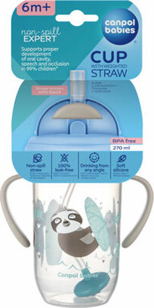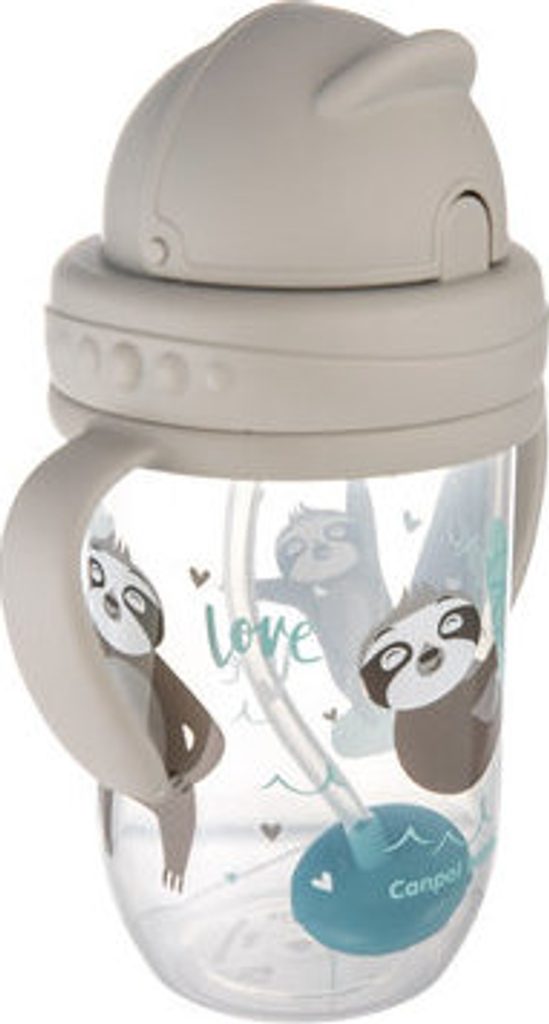 Canpol babies Nevylévací hrníček se slámkou a závažím Exotic Lenochod - šedý, 270 ml