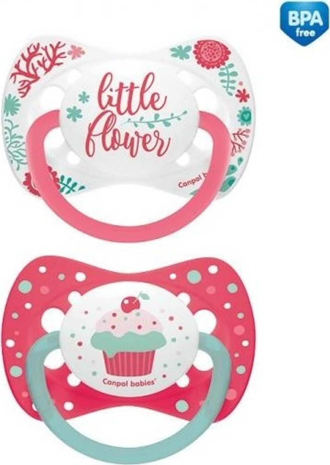 Canpol Babies Sada 2 ks symetrických dudlíků, 0 - 6 m, Canpol Babies - Little flower, Cupcake