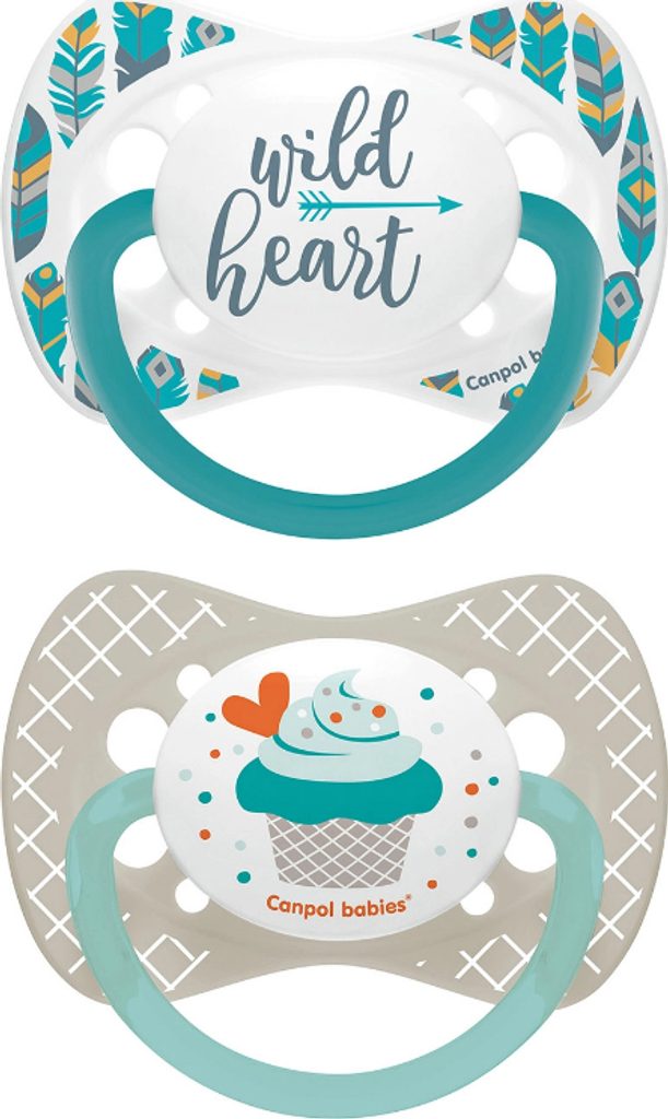 Canpol Babies Sada 2 ks symetrických dudlíků, 0 - 6 m, Canpol Babies - Wild heart, Cupcake