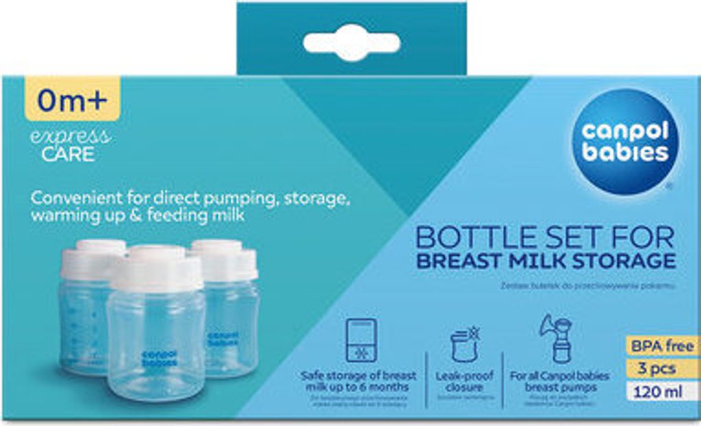 Sadu dětských lahví Canpol pro uchování mateřského mléka lze použít přímo s odsávačkami mateřského mléka, což vám umožní odsávat, uchovávat, ohřívat a krmit vaše dítě mateřským mlékem pomocí stejné láhve. Díky tomu nepřijde nazmar ani kapka cenného jídla. Díky tomu není nutné odsáté mléko přelévat do speciálních sáčků, což je hospodárnější a méně mytí. Láhve lze mýt v myčce na nádobí a dezinfikovat ve sterilizátoru a ohřívat v mikrovlnné troubě nebo ohřívači lahví. Lahvičky jsou vyrobeny z materiálu, který umožňuje uchování blahodárných vlastností mateřského mléka a jeho bezpečné skladování v lednici nebo mrazáku po dobu až 6 měsíců. Jasná a přesná stupnice usnadňuje kontrolu množství odsátého mléka. Sada obsahuje také uzávěry a matice pro těsné uzavření. Láhev lze použít se všemi savičkami Canpol pro kojení kojenců. Sada kojeneckých lahví Canpol pro uchování mateřského mléka je skvělým pomocníkem při kojení. Byl vytvořen pro bezpečné a dlouhodobé skladování odsátého mléka tak, aby poskytl maminkám komfort v situacích, kdy musí odejít z domu a nechat dítě v péči jiné osoby nebo při přechodném nedostatku mléka.