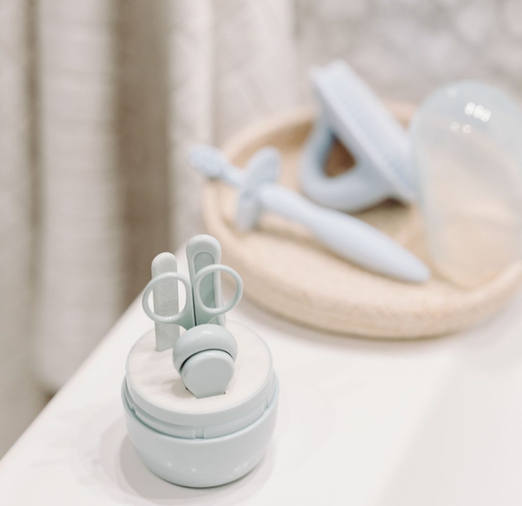 Sada obsahuje nůžky, praktické kleštičky na nehty, jemný pilník a pinzetu. Dostupné ve dvou barevných provedeních. Aby se minimalizovalo riziko neočekávaného pohybu dítěte, doporučuje se ostříhat nehty, když dítě spí. Sada není vhodná do myčky nádobí. Nevyvařujte, pro dezinfekci použijte vhodný dezinfekční prostředek a opláchněte vodou.