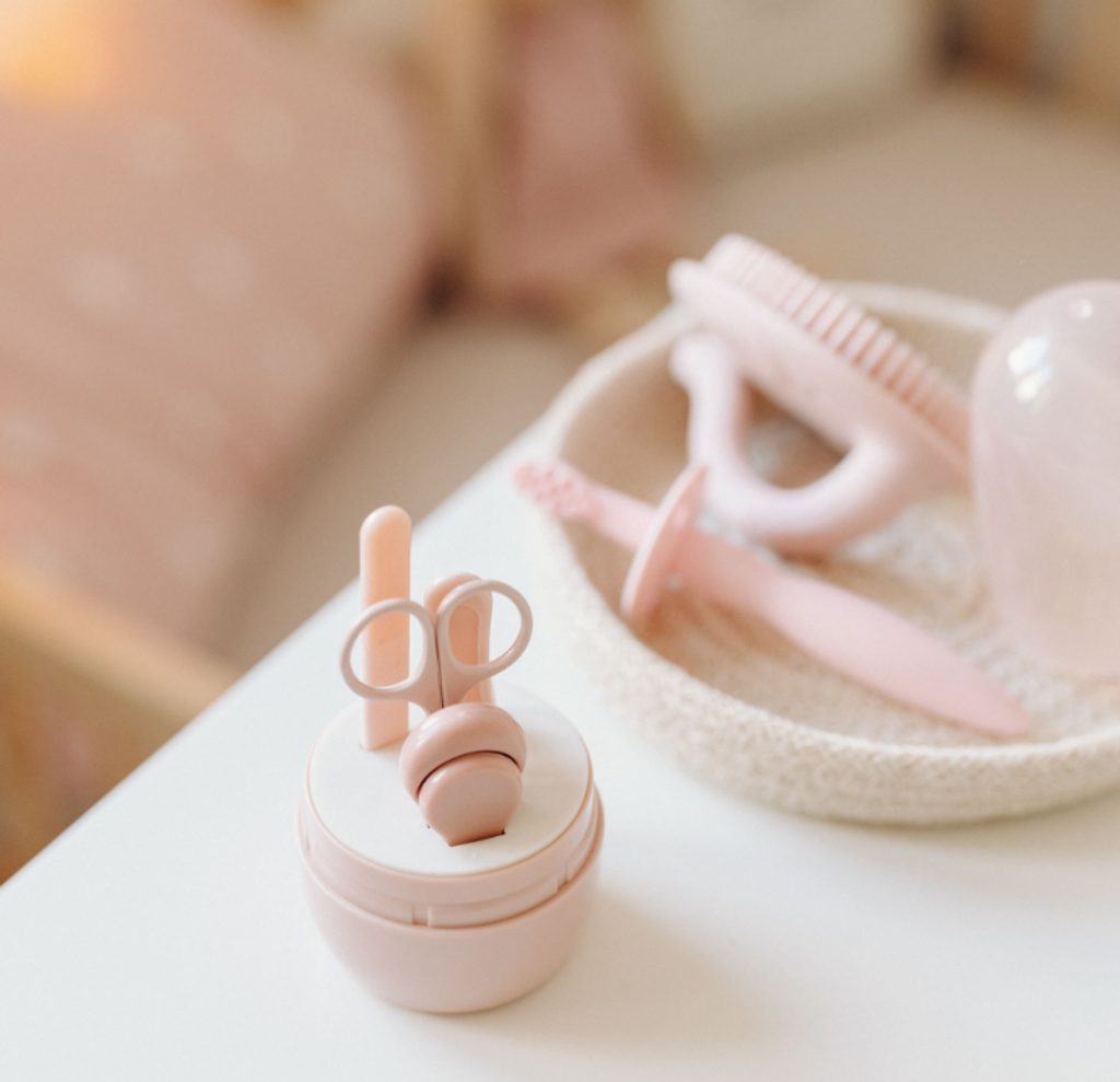 Kompletní sada na nehty pro miminka zabalená v praktickém voděodolném pouzdře, které umožňuje hygienické skladování a přenášení. Sada na nehty pro miminka se skládá ze 4 prvků – nůžek, šikovných kleštiček na nehty, jemného pilníku a pinzety.