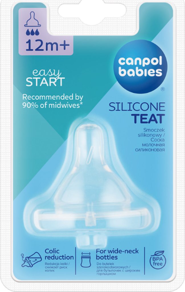 Protikolikový, silikonový dudlík na láhve se širokým hrdlem se velmi dobře odvzdušňuje a tím minimalizuje vznik dětské koliky. Podporuje správný vývoj skusu, řeči a dásní dítěte. Svým tvarem připomíná matčinu bradavku, umožňuje kombinovat krmení z láhve s kojením. Je vyroben z kvalitního silikonu, který se zcela bez chuti a bez zápachu a nemění chuť podávaného pokrmu. Dodává se v šesti velikostech průtoku. Při výběru velikosti dudlíku berte v úvahu také věk dítěte, jeho chuť k jídlu a druh podávaného pokrmu. V balení 1 kus.