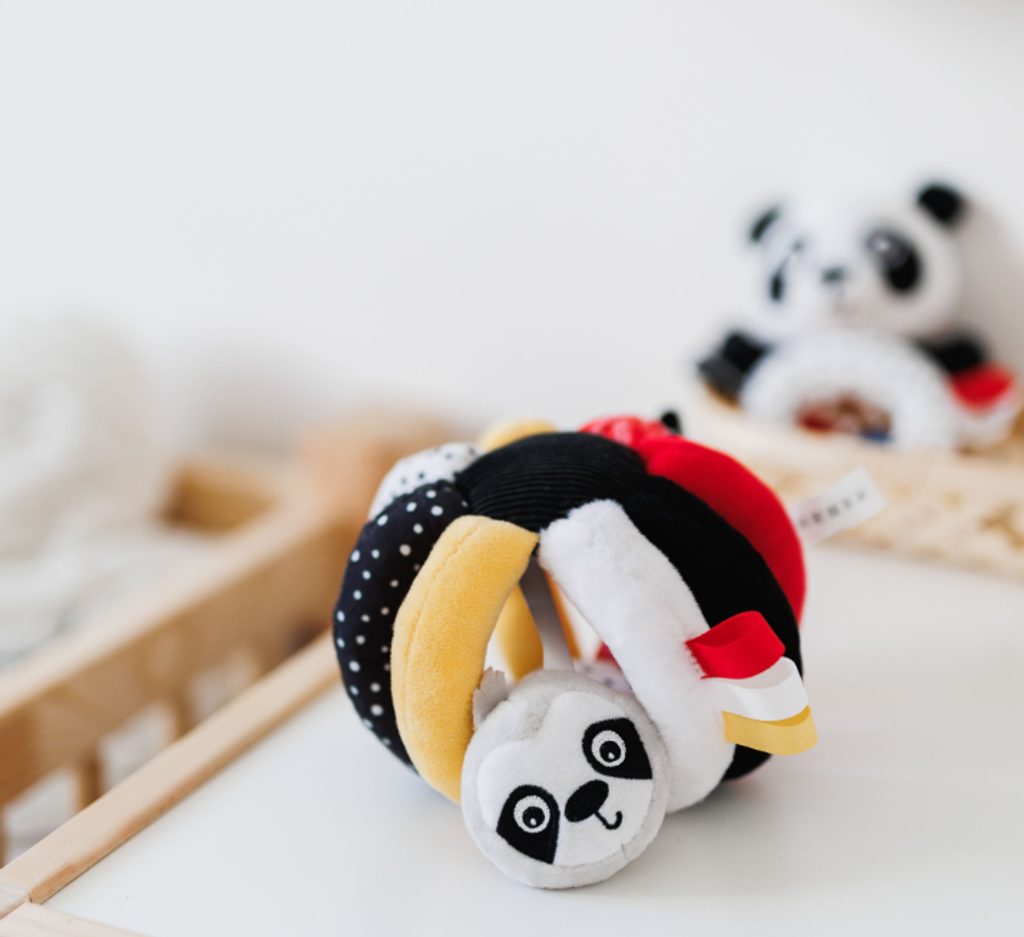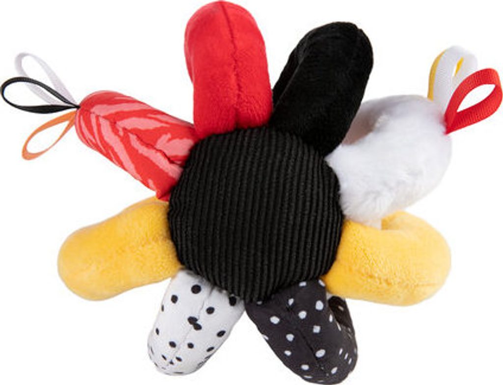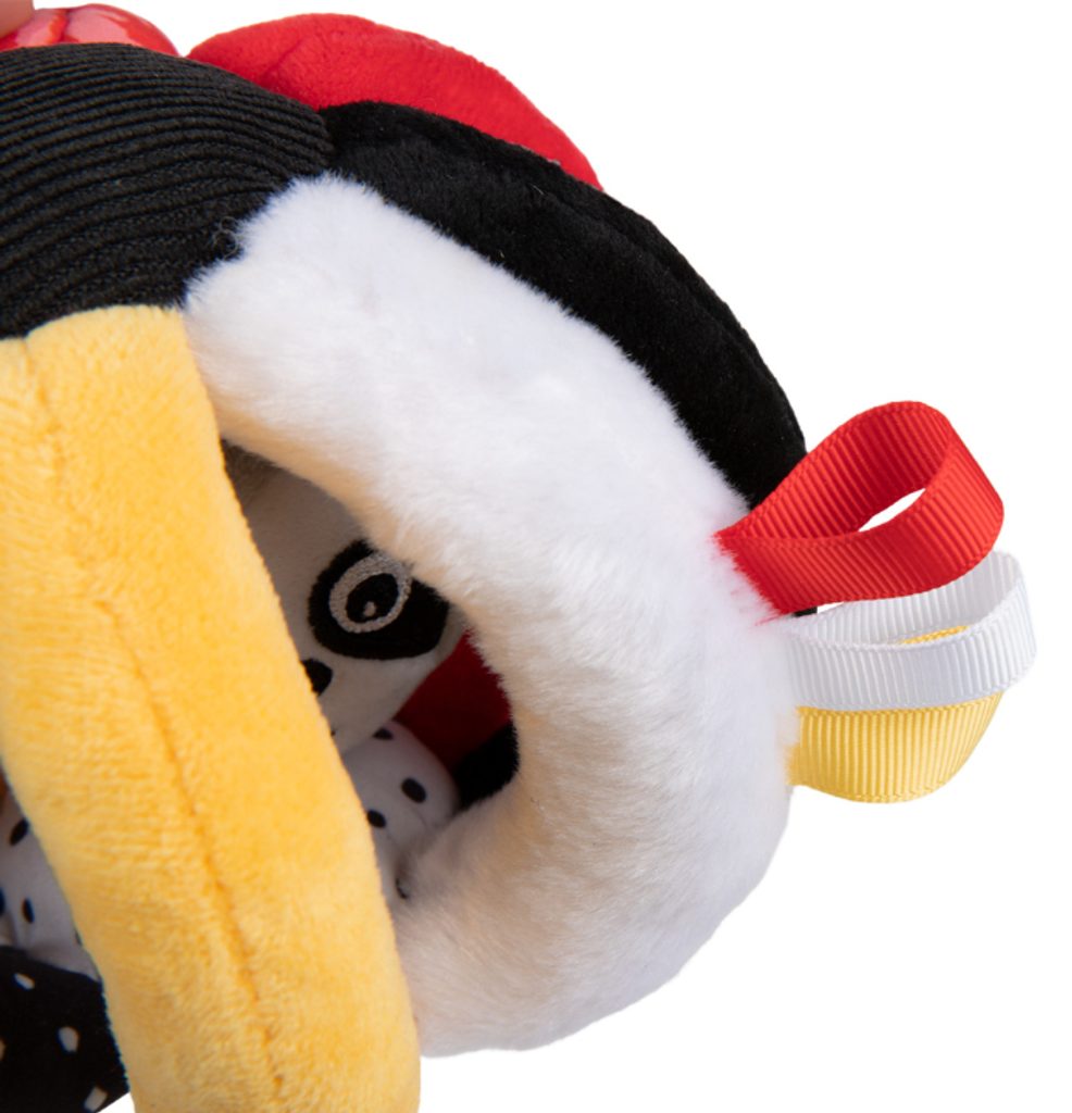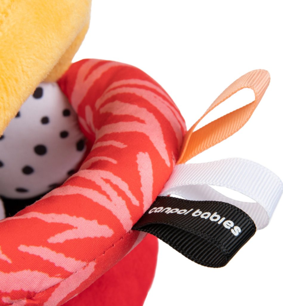 Interaktivní prvky – šustění, pískání, visačky a různé textury materiálu jsou pro dítě zajímavé při poznávání světa.