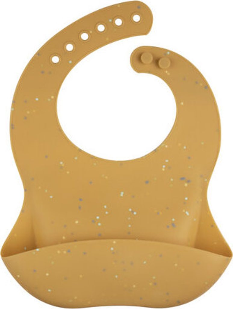 Canpol babies Silikonový bryndák s kapsou DOTS žlutý