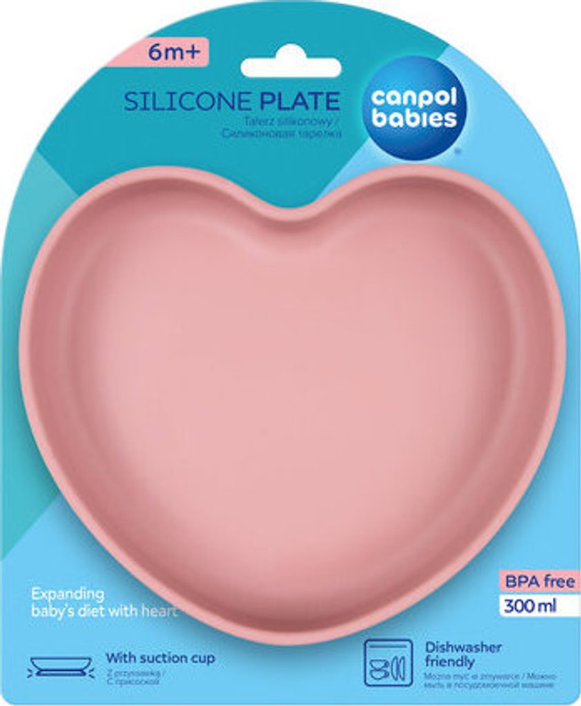 Silikonový talíř s přísavkou ve tvaru SRDCE je ideální pro první příkrmy dítěte. Speciální přísavka zabraňuje náhodnému převrhnutí nebo pádu talíře ze stolu.