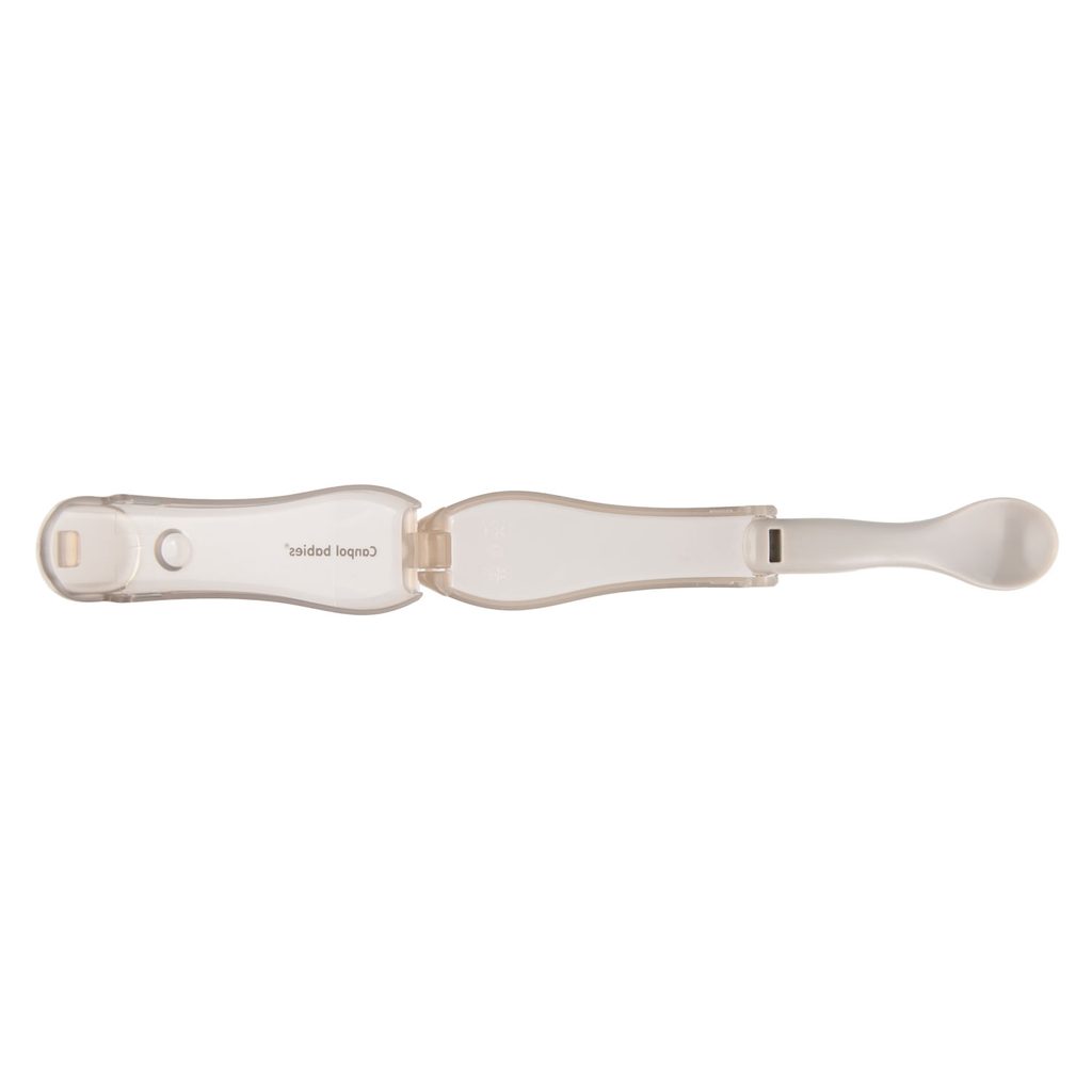 Chcete dát svému miminku na cesty teplou polévku, jogurt nebo ovocnou pěnu? Skládací cestovní lžička je perfektním řešením pro pohodlné krmení mimo domov. Lžíce se otevírá jediným kliknutím a je připravena k použití, kdekoli budete chtít. Lžíce se dá složit do pohodlné malé velikosti, snadno se vejde do tašky nebo batohu. Pouzdro, které je zabudováno do rukojeti lžičky, zabraňuje hromadění bakterií, lžička tak zůstává čistá a její používání je pro dítě hygienické a bezpečné. Po snězení jídla vám umožní jeho přenášení bez rizika zašpinění tašky nebo batohu. Zaoblené hrany nedráždí jemné dásně miminka, takže lžičky budou perfektní i při prvních pokusech o samostatné krmení. Lžička je určena pro děti starší 4 měsíců.