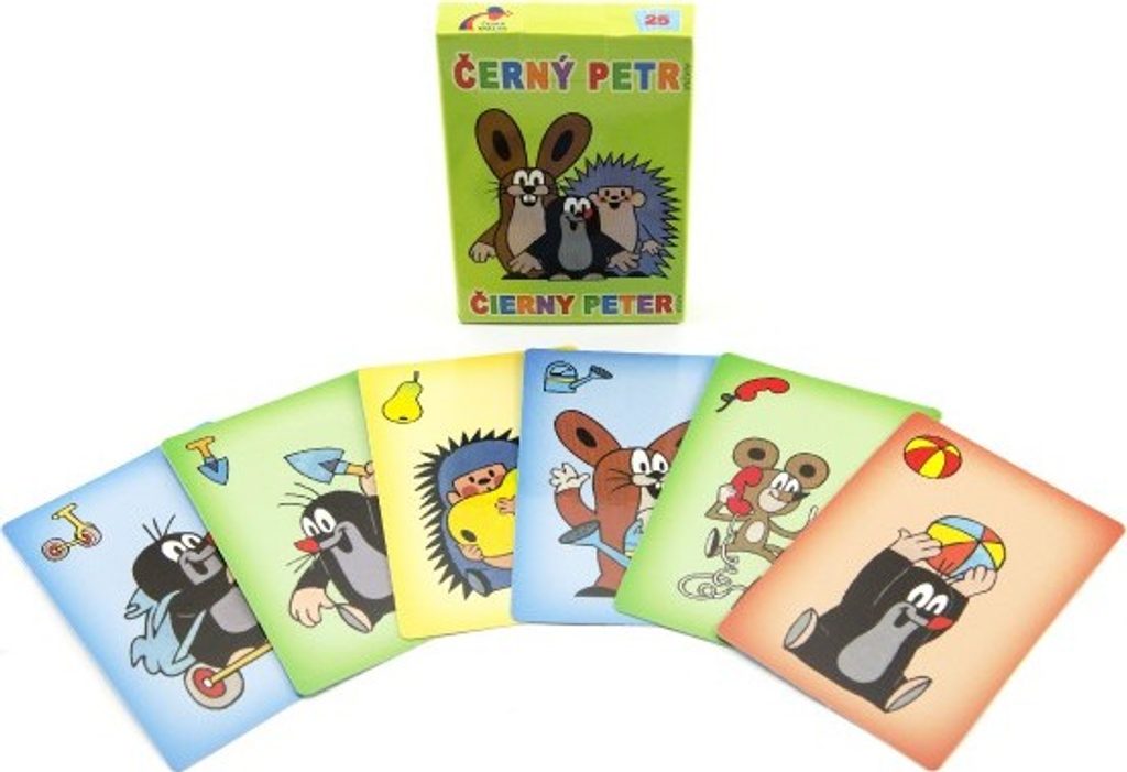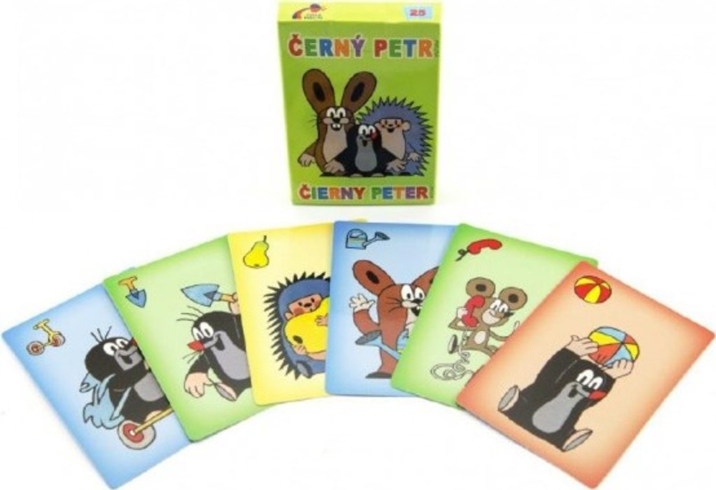 Hra Černý Petr s motivem Krtka. Karty jsou v papírové krabičce.