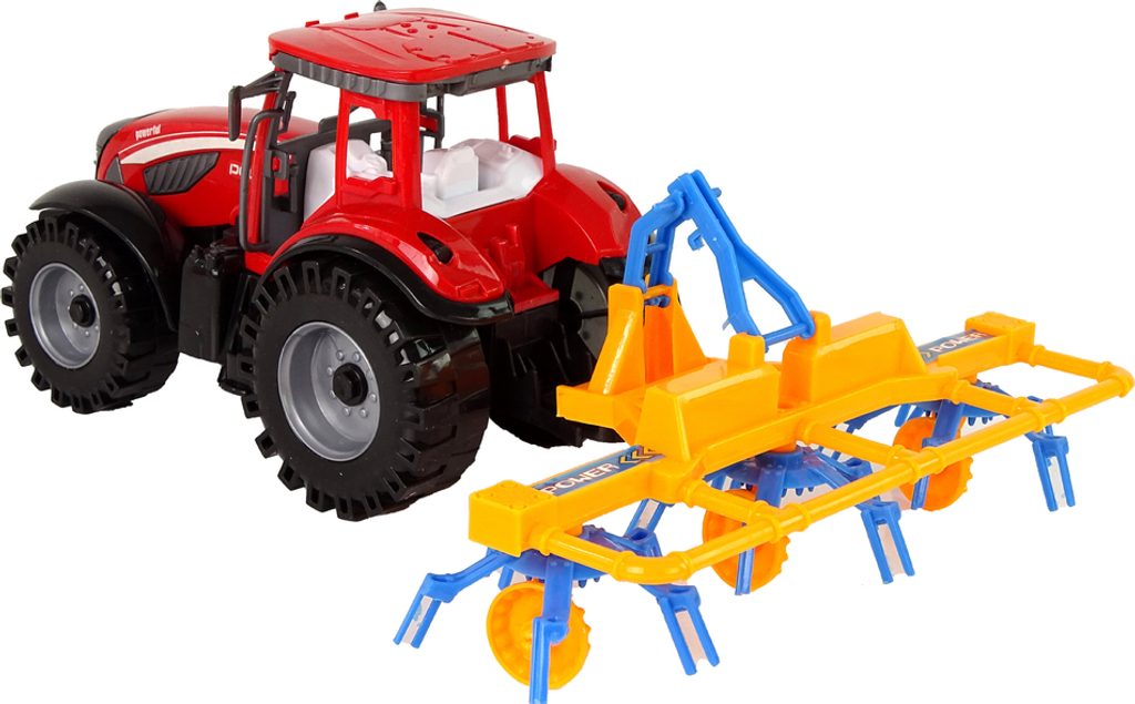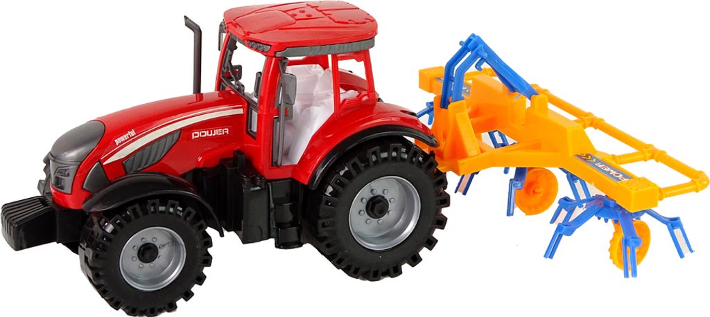 Červený traktor s obracečkou na setrvačník - perfektní hračka pro fanoušky zemědělské techniky. Součástí je obracečka, která poskytuje jak zábavnou, tak vzdělávací hodnotu. Tato sada umožní dětem objevovat svět zemědělství.