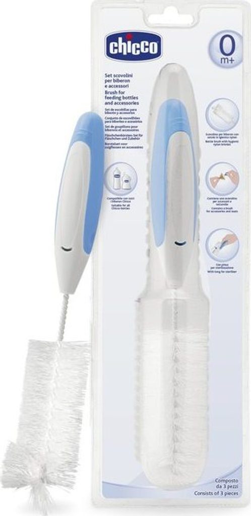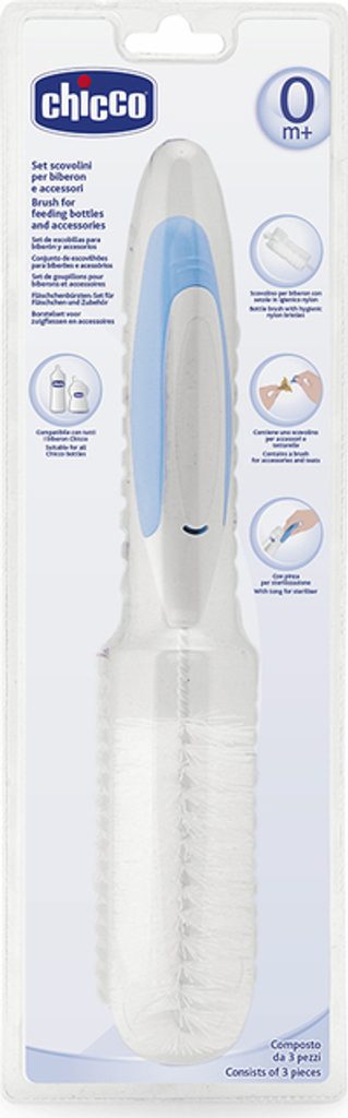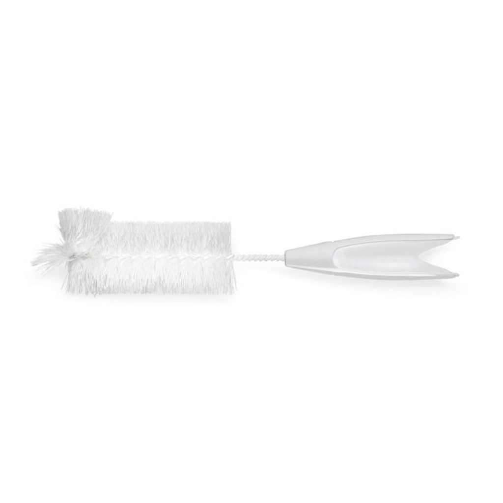 Šikovný kartáček z plastu a nylonových štětin na mytí kojeneckých lahví. Byl navržen tak, aby účinně čistil příslušenství bez poškození vnitřního povrchu. Hodí se na každou láhev. Rukojeť pojme menší kartáček na mytí saviček a příslušenství a praktické kleště na vyjmutí příslušenství po sterilizaci nebo napařování.