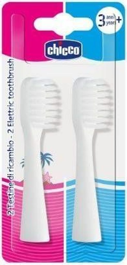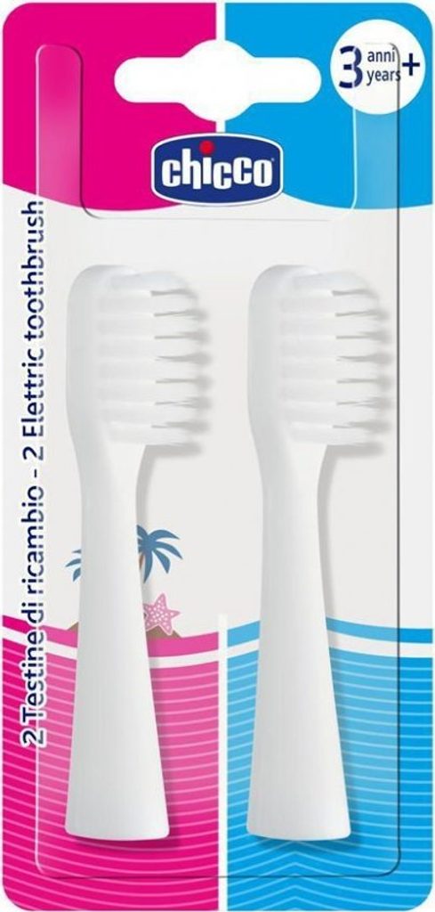 Náhradní hlavice na elektrický kartáček Chicco 2 hlavy v balení s kryty, unisex verze Vibrační hlavice v kombinaci s ultra měkkými štětinami „kónické technologie“ s ultra tenkými špičkami jemně působí na sklovinu a citlivé dásně. Štětiny jsou při odstraňování plaku účinnější než tradiční zubní kartáčky, protože mají snadnější přístup k mezerám mezi zuby. Součástí balení jsou 2 hlavice s kryty.