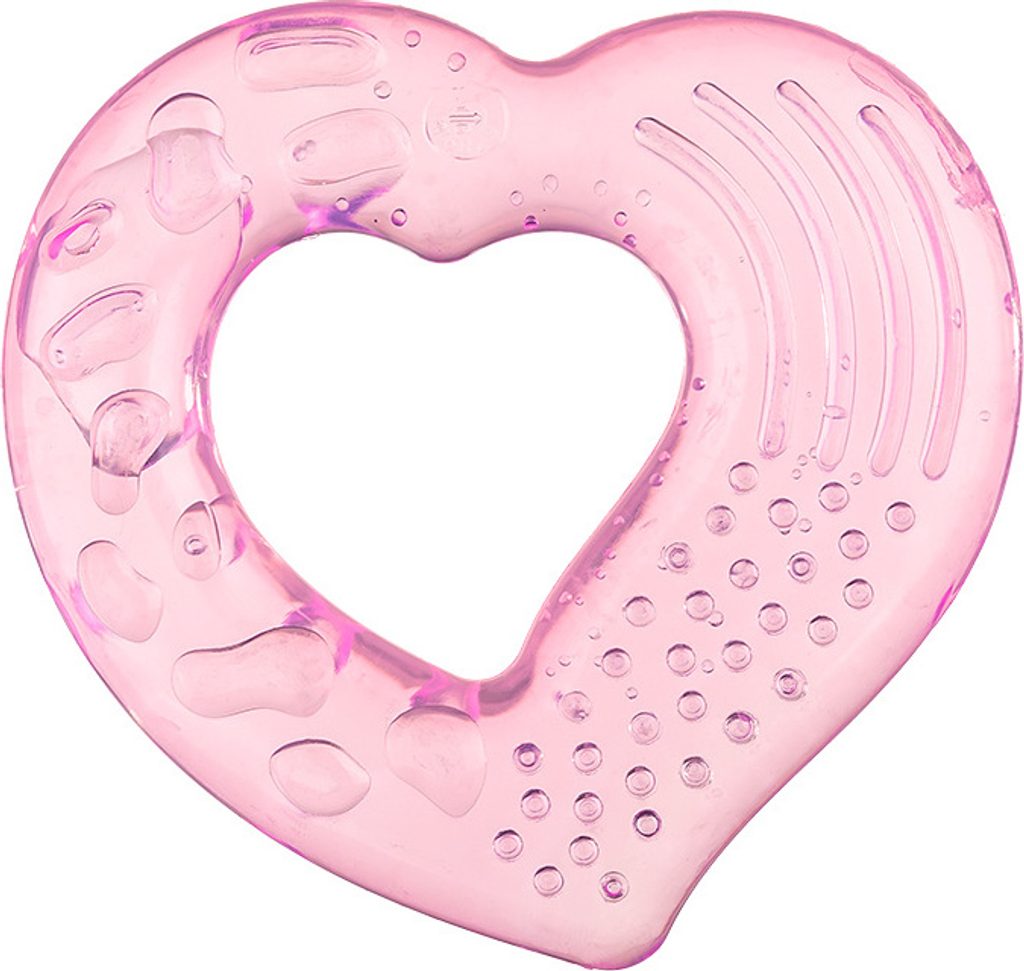 Krásné kousátko ve tvaru růžového srdce naplněného studenou vodou. Má výstupky, které přinesou úlevu podrážděným dásním vašeho miminka. Díky velkému otvoru uprostřed je pohodlné uchopení malými ručičkami.
