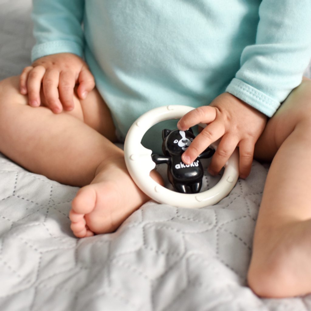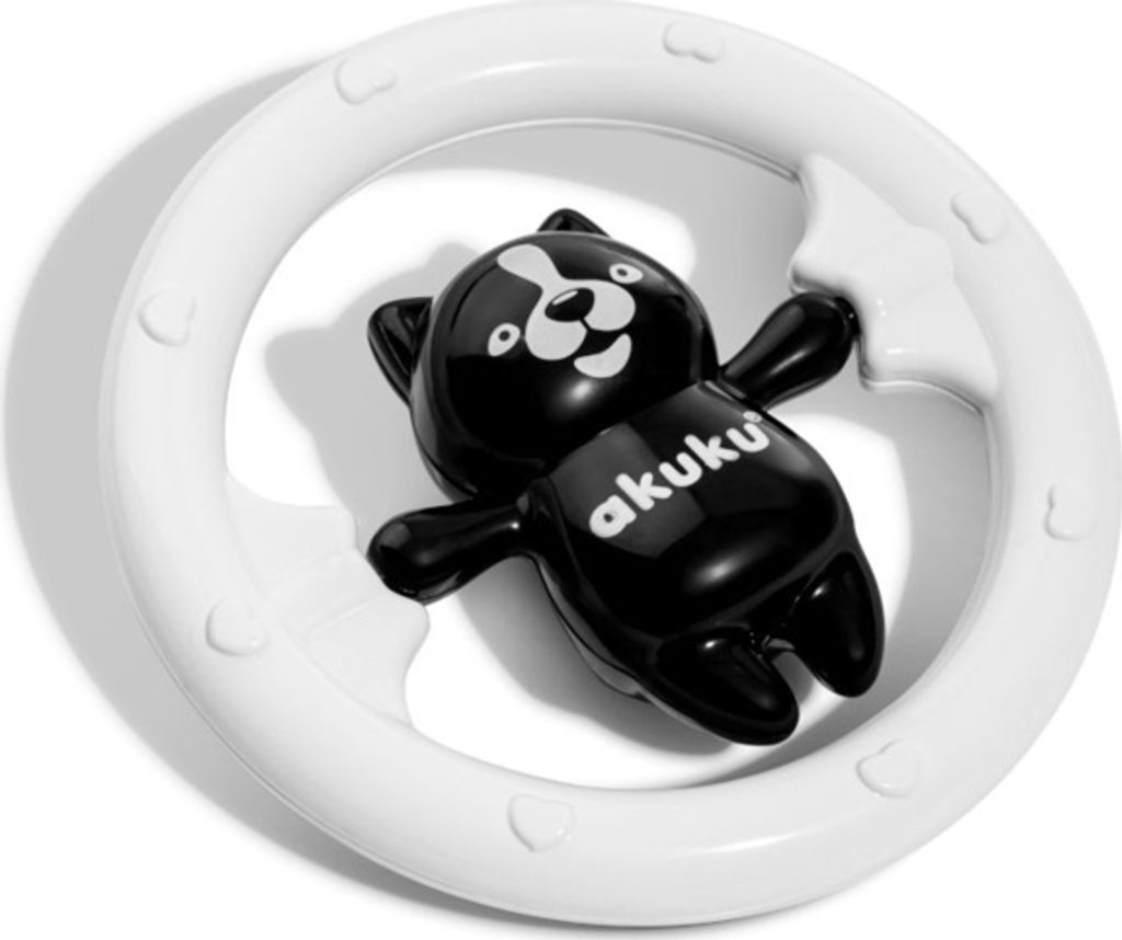 Černobílé dětské chrastítko je díky svému tvaru a kombinaci barev u dětí velmi oblíbené a stimuluje rozvoj jejich koordinace a smyslů. Je vyrobeno z vysoce kvalitních, bezpečných a odolných materiálů. Nemá žádné ostré hrany a neobsahuje bisfenol A (0% BPA).