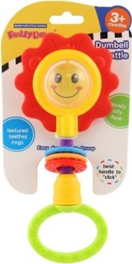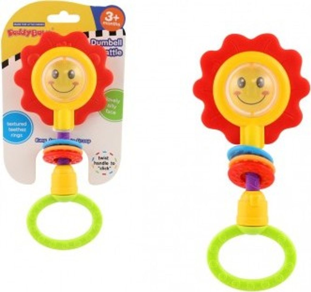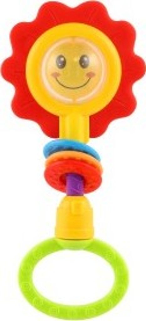Chrastítko obsahuje uprostřed květiny krásného lvíčka nebo usměvavou tvář. Také kroužky a otáčecí rukojeť, která při pohybu vydává zvuky cvakání.