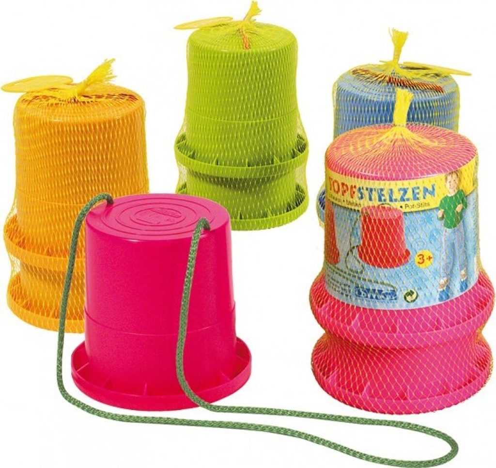Barevné plastové chůdy vyrobeny z kvalitního, pevného materiálu. Balené v síťce. Součástí balení jsou provázky k připevnění na nohy.