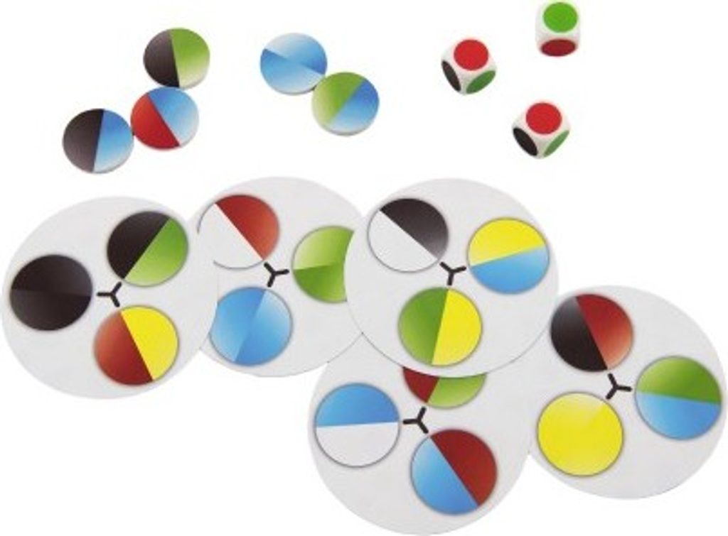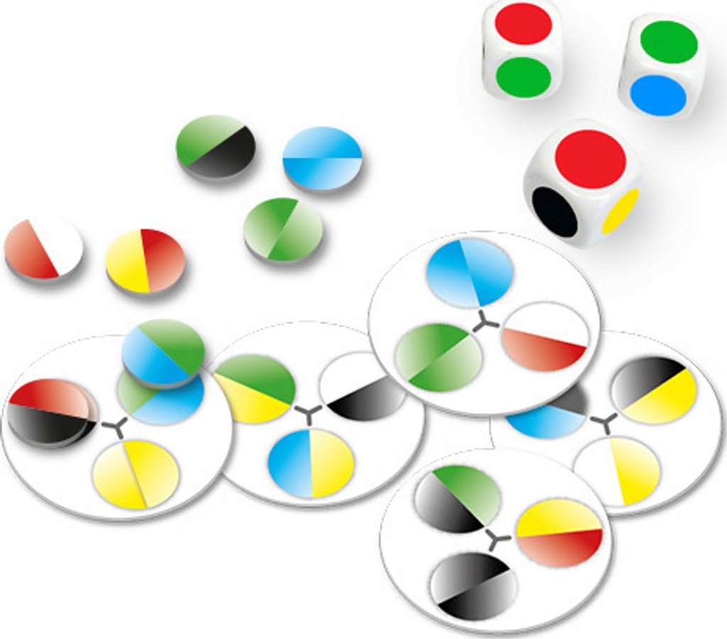 První na řadě hází všemi kostkami najednou a dle nastalé kombinace hledají všichni hráči správný žeton. Hráč, který najde žeton jako první jej umístí na jednu ze 7 karet hracího plánu. Žeton musí umístit na stejně barevné kolečko. Pokládá ho rubem nahoru, aby byla viditelná strana se 4 barvami, a nasměruje svou barvu ke středu karty (tam kde je čárka). Tím určuje, že je žeton jeho a získává body dle tabulky. Počet hráčů 2-5.