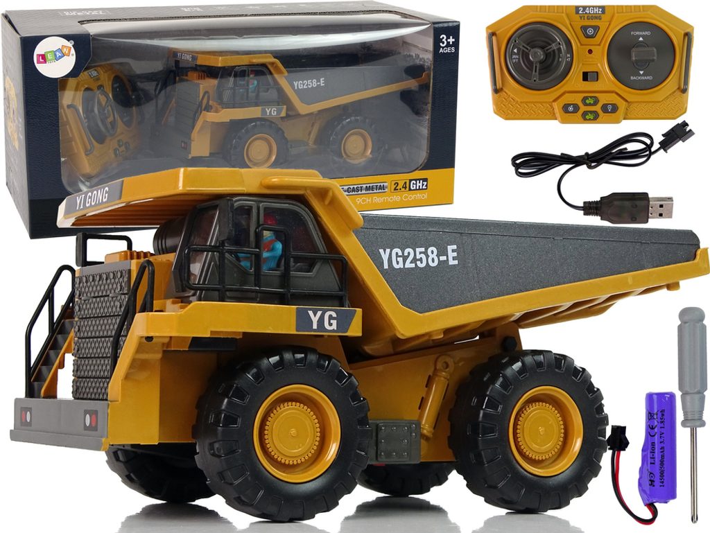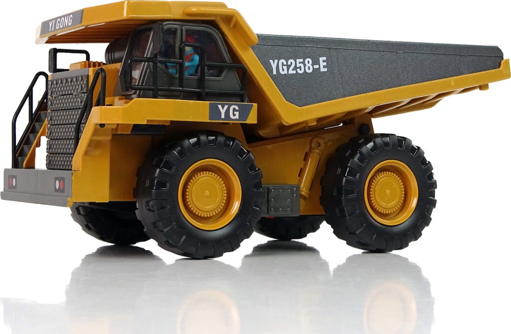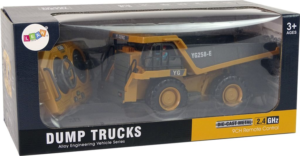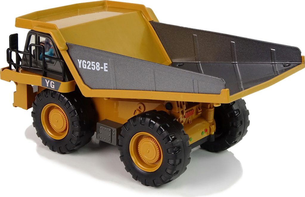 Dálkově ovládané stavební vozidlo je realisticky reprodukovaný model. Žlutý sklápěč zdobí černé detaily a charakteristické polepy. Dálkové ovládání má frekvenci 2,4 GHz. Ovládání dálkového ovladače R/C je velmi jednoduché, dva joysticky umožňují pohodlné manévrování. S jeho pomocí může obsluha vozíku řídit vozík změnou směru jízdy vpřed/vzad a vpravo/vlevo, upravovat hlasitost a především pohybovat sklápěčkou.
