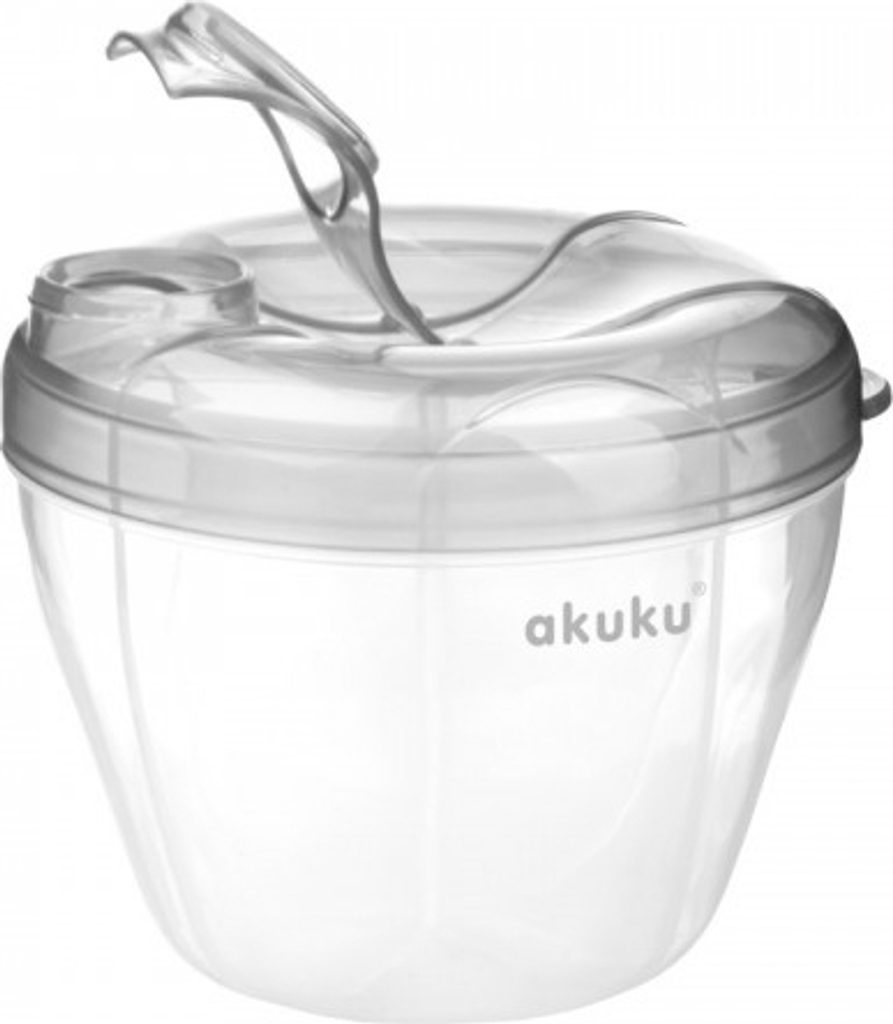 Dávkovač sušeného mléka Akuku. Speciální nádobka se 4 samostatnými přihrádkami, díky kterým lze odměřit a připravit 4 dávky kojeneckého sušeného mléka. Nádobka je velmi praktická především při procházkách a cestování. Neobsahuje BPA. Vhodné pro děti od 0 měsíců. Vhodné do myčky nádobí i sterilizátoru.