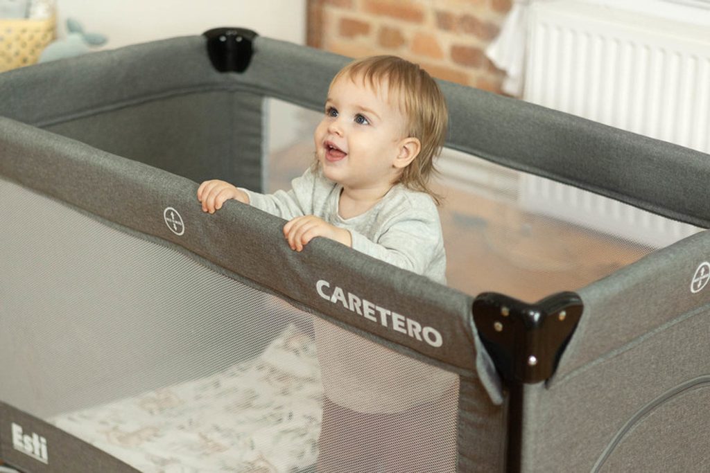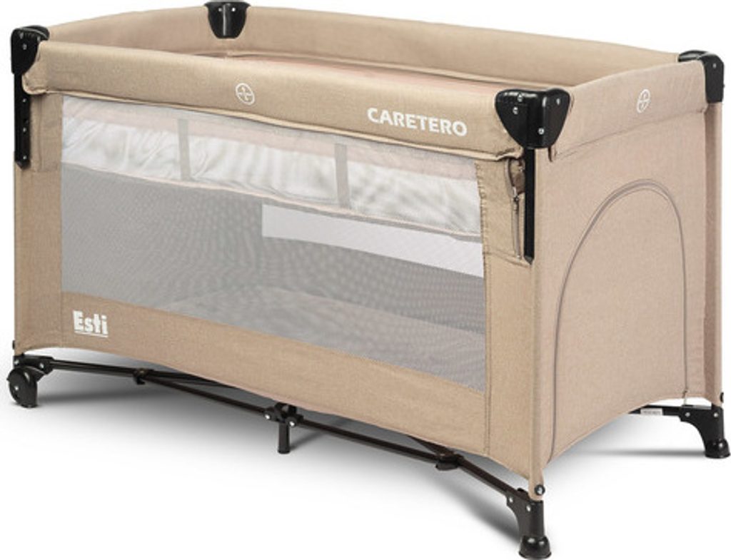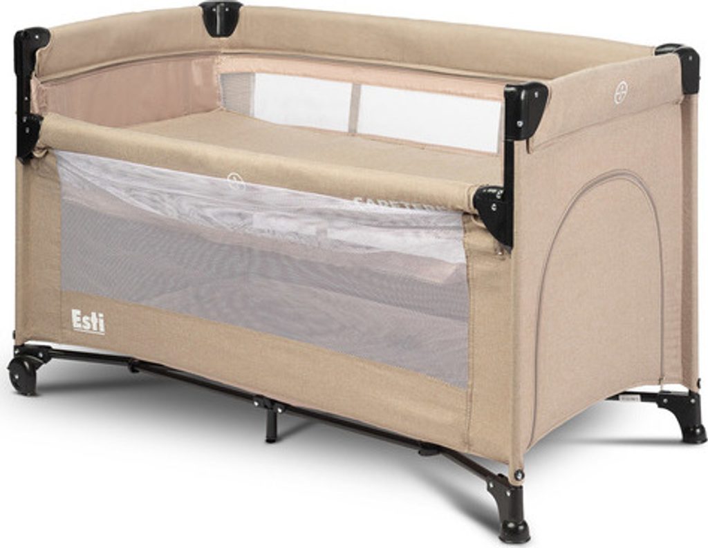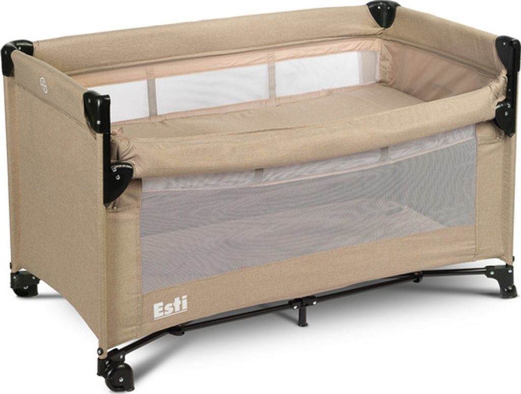 Cestovní postýlka Esti je cestovní postýlka určená k usnadnění péče o miminka. Její největší předností je sklopná bočnice, která promění postýlku na přistýlku a zajistí pohodlnější přístup k dítěti. Praktický skládací mechanismus znamená, že složení nebo rozložení zabere jen okamžik. Postýlka má také kolečka s blokádou pro snadné přenášení. Boční dvířka uzavíraná na zip umožní starším dětem bezpečný vstup do postýlky, kterou lze využít jako ohrádku. Postýlka splňuje normu EN 716: 2017-07