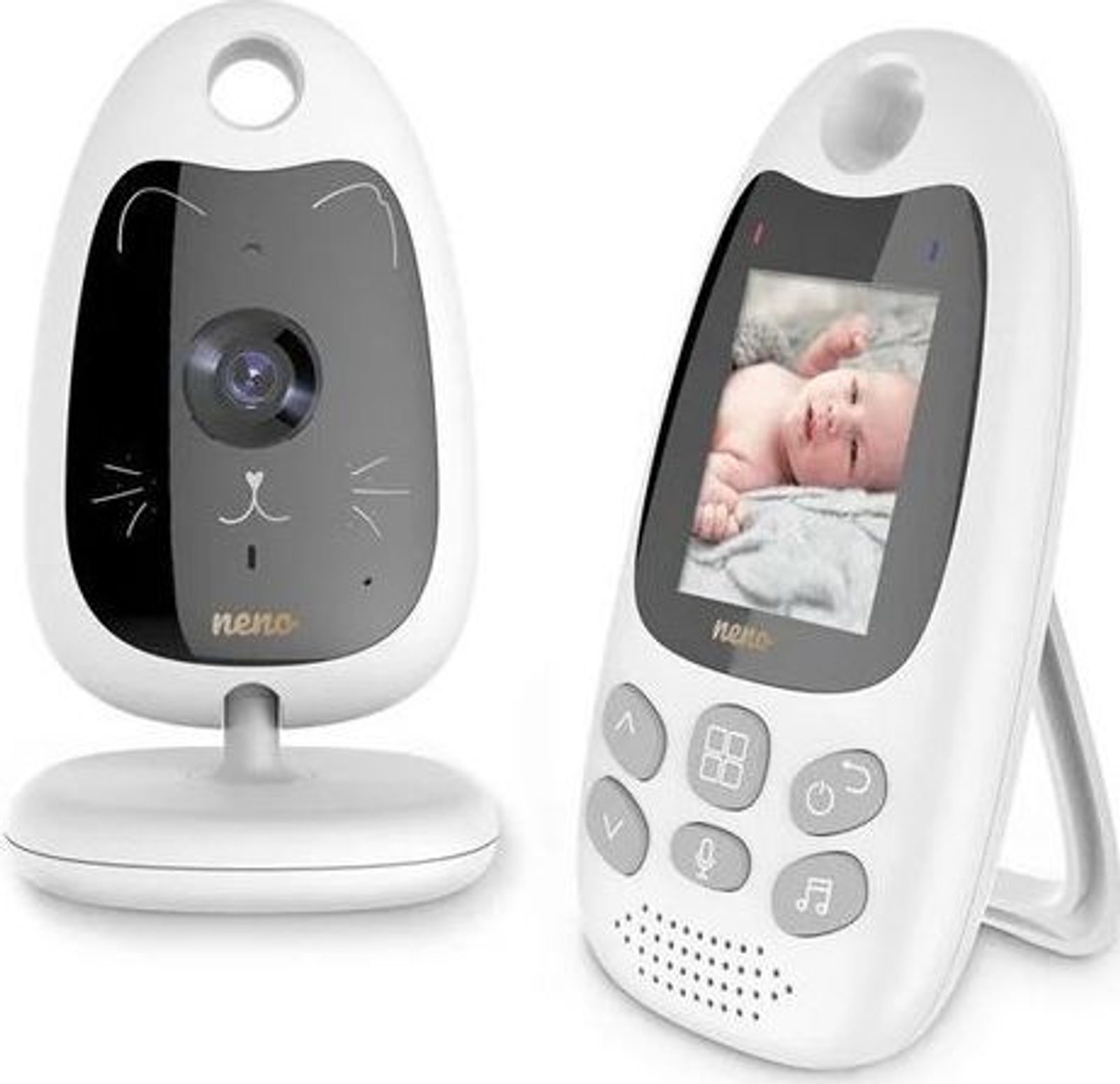 Neno Gato 2 je vylepšený nástupce elektronické chůvy Neno Gato. Zařízení se skládá z kamery, která připomíná motiv koťátka, a přenosného přijímače, takže můžete mít svého drobečka neustále na očích. Zařízení je vybaveno funkcí obousměrné komunikace, která vám umožní nejen slyšet pláč vašeho dítěte, ale také mu pošeptat. Dosah signálu je až 50 m v interiéru a až 260 m venku. To vše pro vaše pohodlí a bezpečnost vašeho dítěte. Přijímač má vestavěnou dobíjecí baterii, která mu po nabití umožňuje pracovat několik hodin. Pro kameru je zapotřebí připojení k elektrické síti.