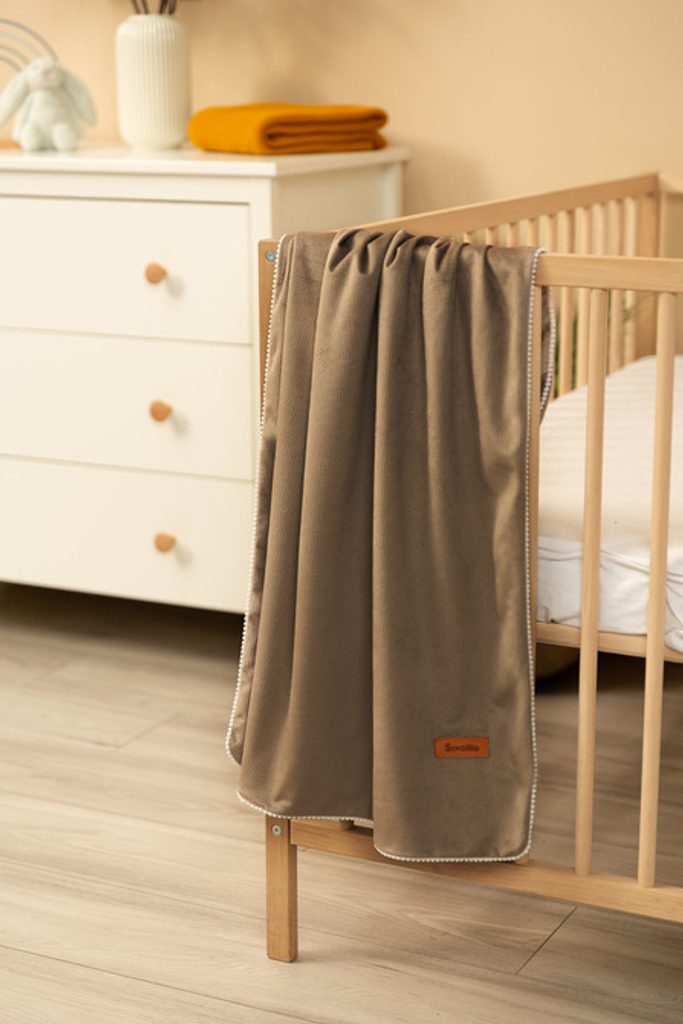 Velvet deka je lehká deka vyrobená z kombinace dvou vrstev sametové látky. Je velmi měkká a příjemná na dotek a snadno se udržuje. Dobře poslouží při procházkách v teplých slunečných dnech, lze ji použít jako: silnější zavinovačku, podložku na každodenní hraní, plážovou deku nebo přikrývku při krmení. Další výhodou je estetická hodnota přikrývky - krásná textura látky a ozdobná stuha.