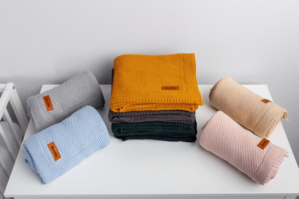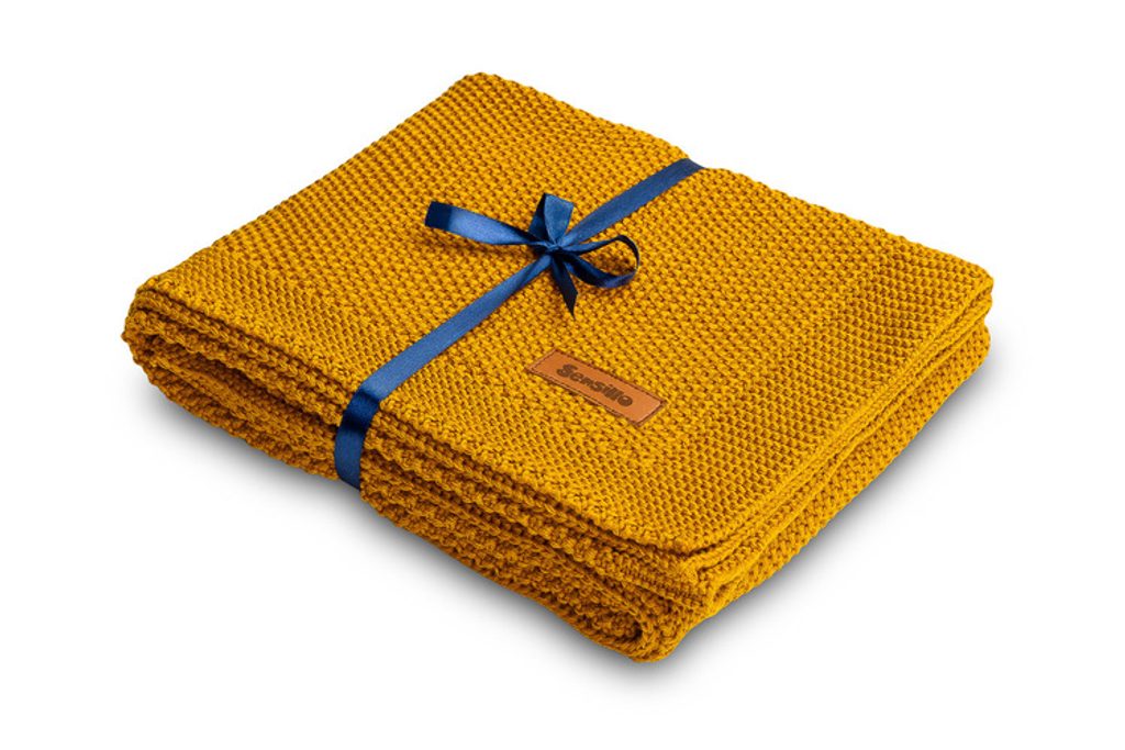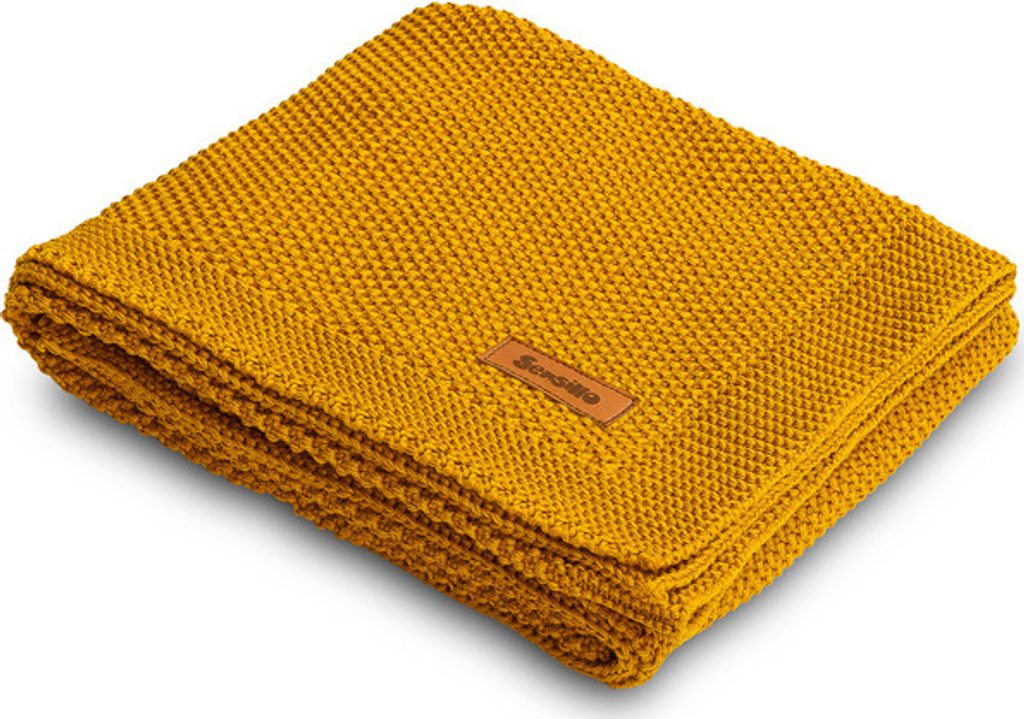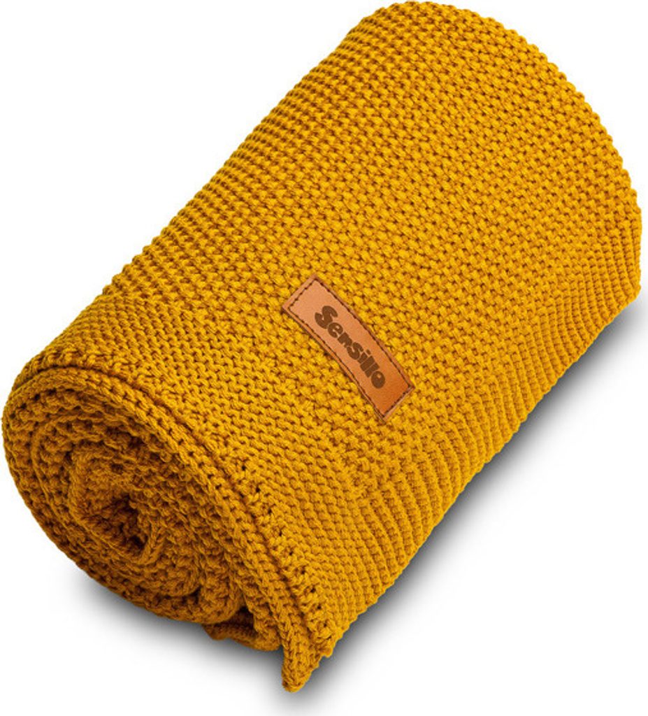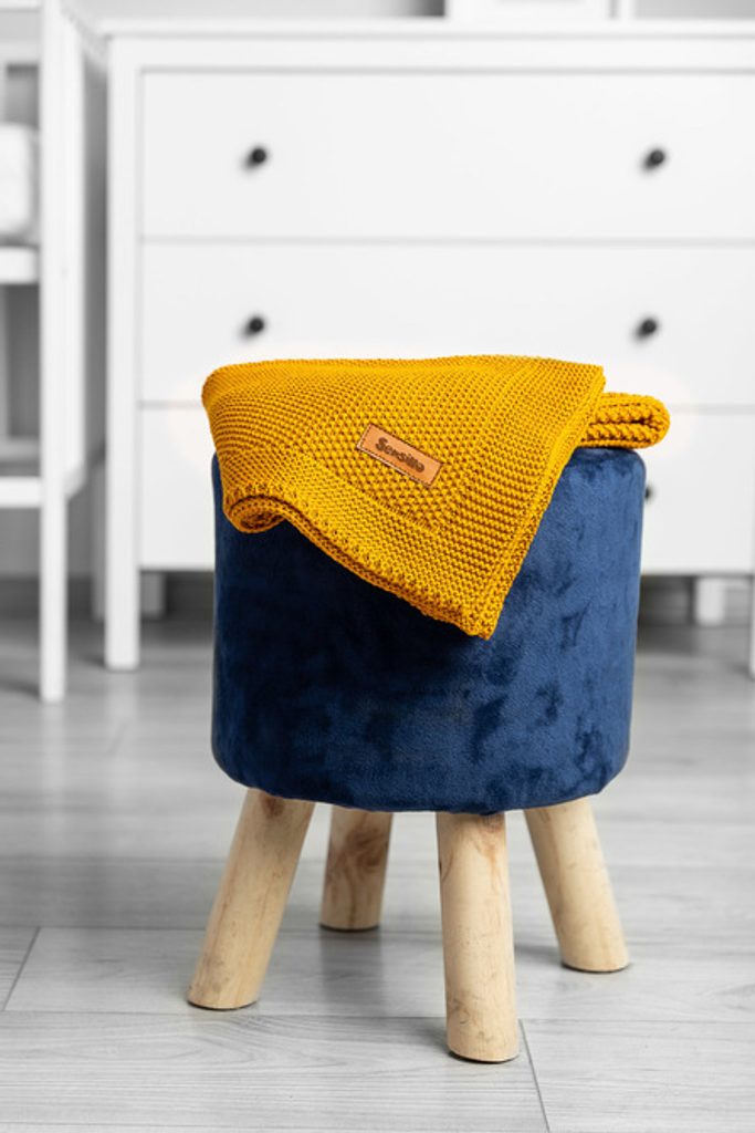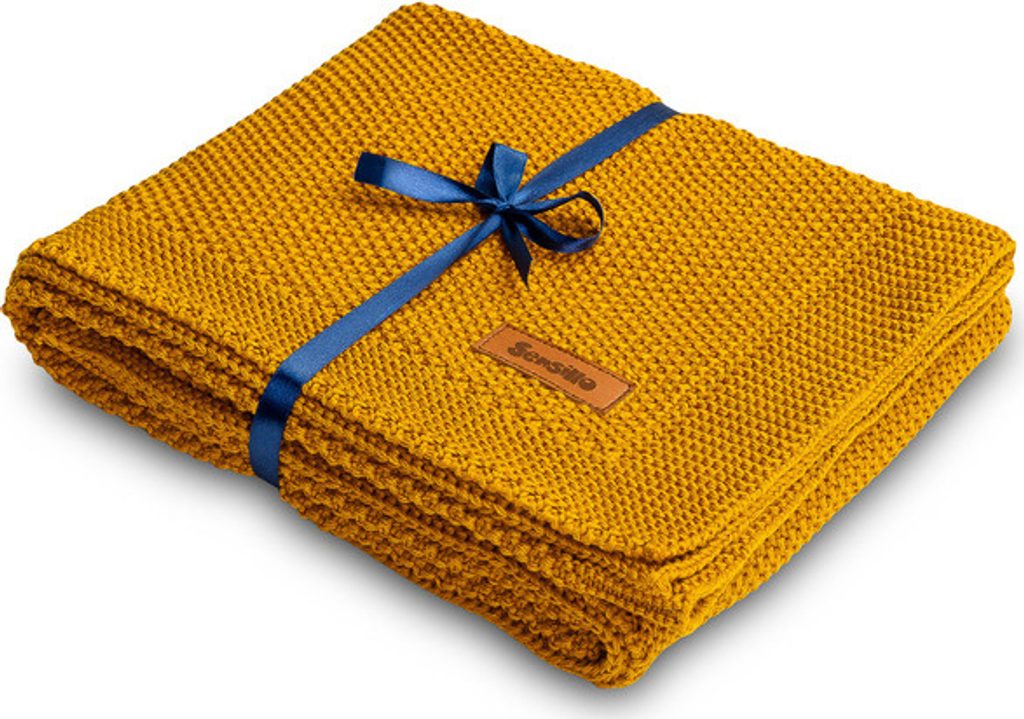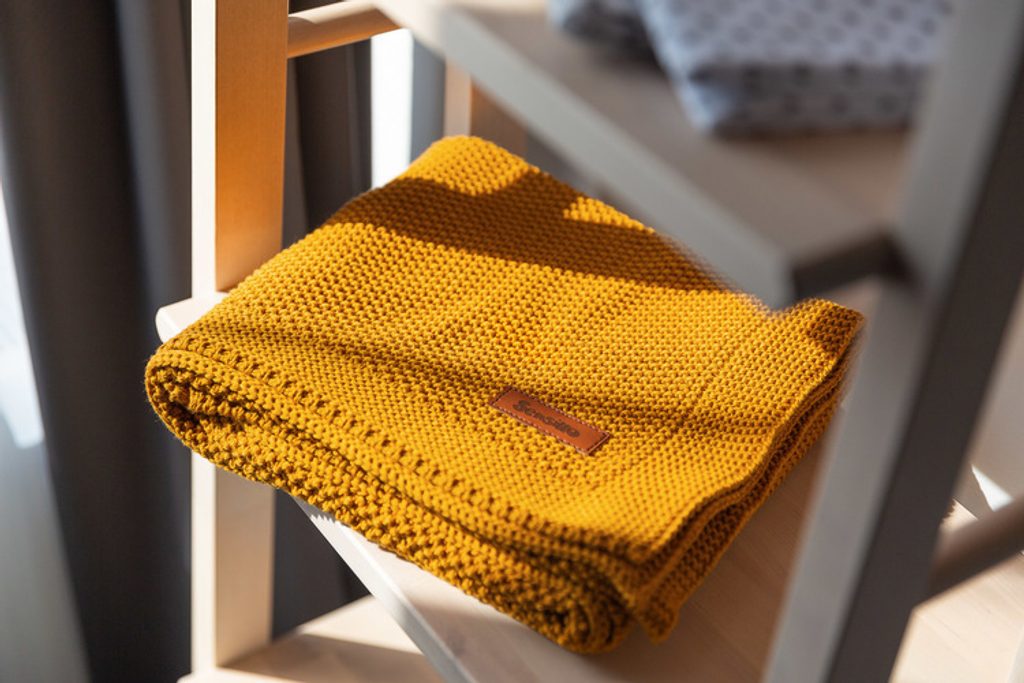 Dětská deka do kočárku pletená 100% bavlna hořčice