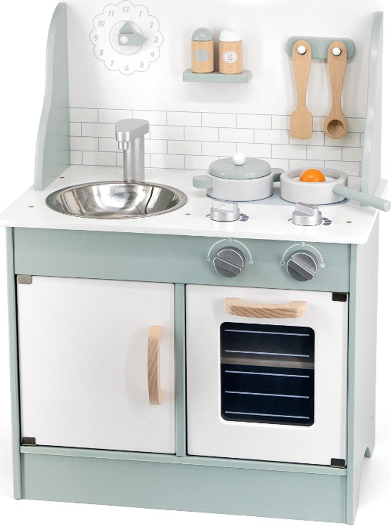 Kuchyňky značky Viga jsou vysněným kusem nábytku pro malé kuchaře. Každá kuchyňka má dřez, troubu a sporák, kde můžete vytvořit oblíbené pokrmy pro celou rodinu. Postav hrnec na sporák, jehož hořáky se rozsvítí, a připrav libovolné jídlo pro panenky a medvídky. Vařič je vybaven potřebným příslušenstvím při vaření.