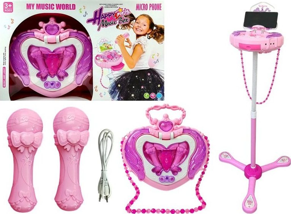 Zveme vás na první takový koncert! Vaše dítě dnes překvapí publikum svým jedinečným repertoárem, kterému dopomáhají růžové, dětské mikrofony na stojánku. Přítomnost hudby má vysoce pozitivní vliv na správný vývoj každého dítěte. Pokud vaše batole projevuje zájem o hraní hraček již od prvních let, usnadněte mu další hraní a rozvíjejte jeho hudební zájmy zakoupením tohoto jedinečného karaoke mikrofonu. Taková hračka je perfektním dárkem pro každého malého umělce, který rád zpívá a vystupuje na domácí scéně.