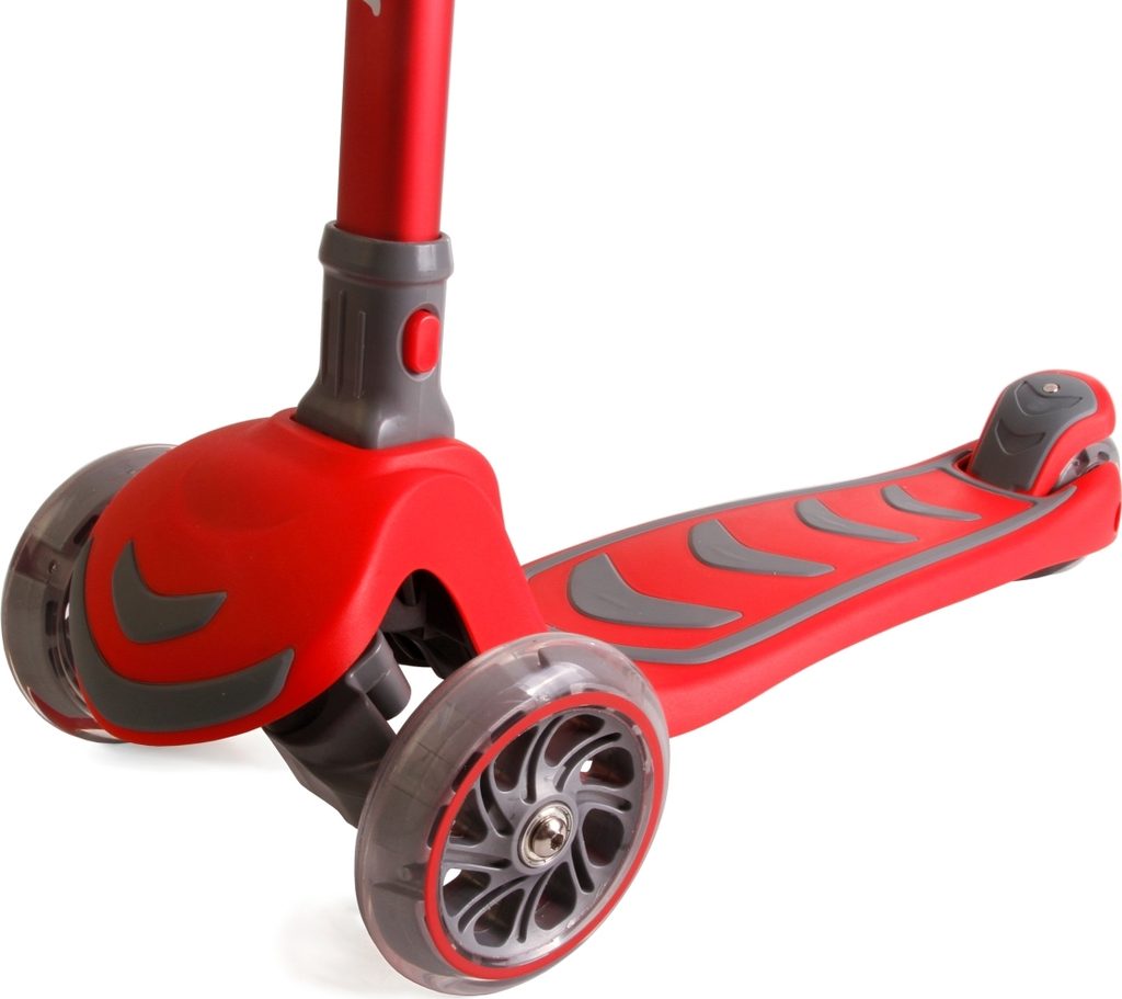 CHARAKTERISTIKA: - Lehká a pevná konstrukce (hliník, vyztužený plast) - Rukojeti jsou vyrobeny z měkkého a příjemného na dotyk materiálu, který zabraňuje sklouznutí ruky - Zatáčení funguje na principu rovnováhy těla - 3stupňové výškové nastavení řídítek pomocí rychloupínáku - Protiskluzový povrch na plošině - Vybaveno brzdou - zadní blatník - Ložisko: ABEC-7 - Přední svítící kola: PU 120x30 mm - Nové svítící dvojité zadní kolečko: PU 80x24,5 mm - Gumová kola vyrobená z kvalitního gumového materiálu zaručí tichou jízdu a správnou přilnavost - Poutavý, stylový design - K dispozici ve 4 fantastických barvách: růžová, červená, zelená, modrá - Maximální zatížení až 50 kg - Věkové rozpětí 3+