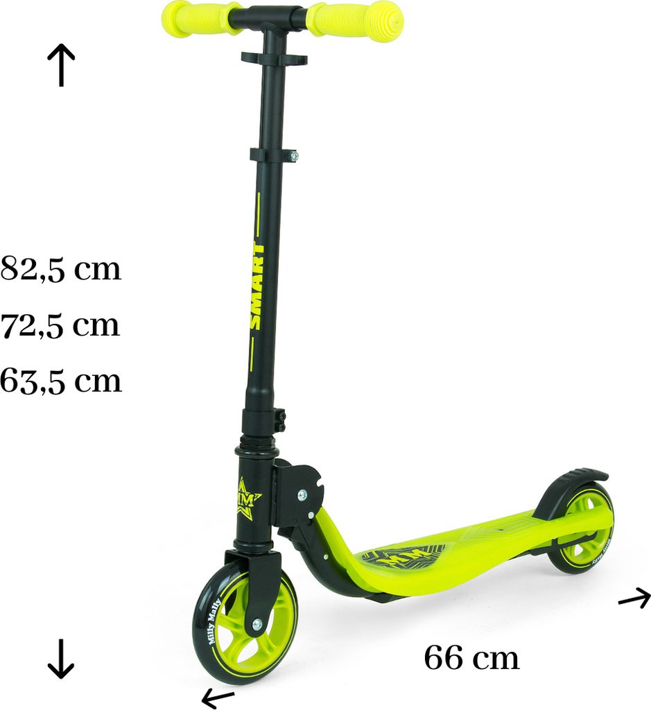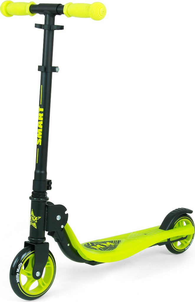 Koloběžka Milly Mally Smart je ideální nejen pro větší děti, ale i dospělé s maximální hmotností do 100 kg. Jízdou na koloběžce procvičujete rovnováhu, posilujete svalový systém celého těla a trénujete vytrvalost. Díky použití větších koleček dokáže koloběžka Smart snadno překonávat menší nerovnosti. Plošina se speciálním protiskluzovým povrchem a vyztužena kovovým rámem zaručí vysokou bezpečnost a odolnost. Inovativní a rychlý systém skládání oceníte jak doma, tak na cestách. Koloběžka je dodávána ve smontovaném stavu, není potřeba žádná dodatečná montáž.