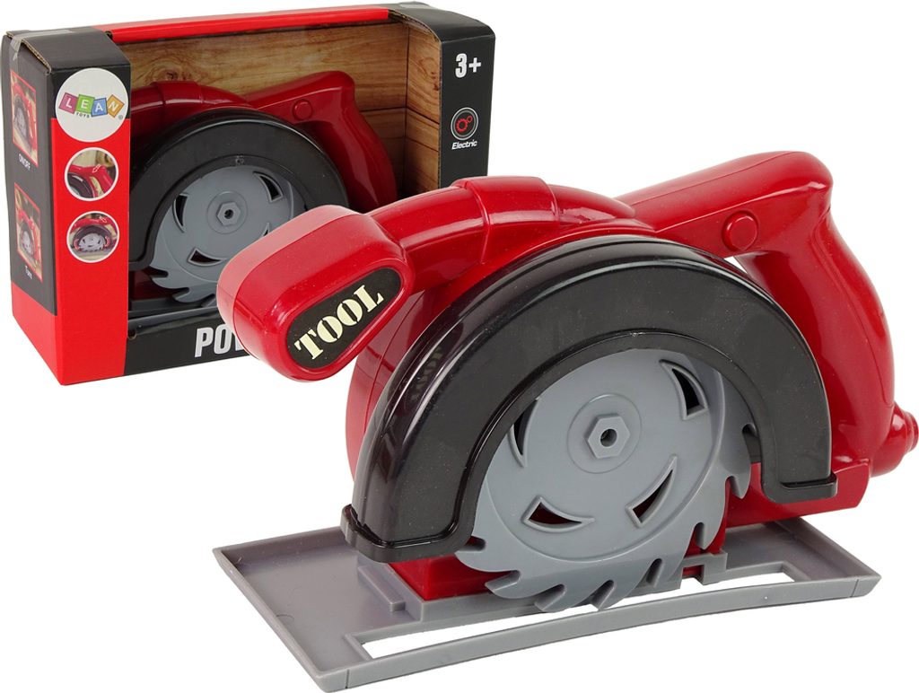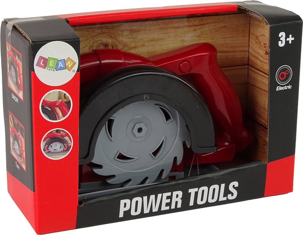 Tato sada obsahuje kotoučovou pilu, stisknutím tlačítka se kotouč začne otáčet. Celá věc je vyrobena v červené barvě, dokonale se hodí pro malé ručičky.