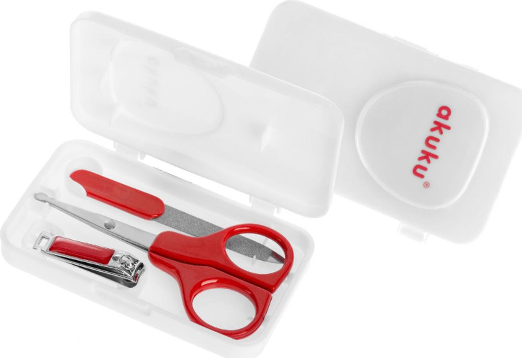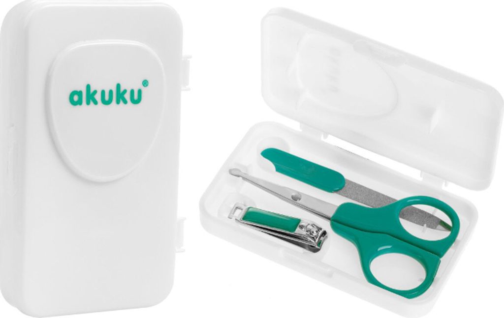 Praktická sada na manikúru usnadní každé starostlivé mamince péči o nehty jejího miminka. Nůžky (s tenkými kovovými břity a zaoblenými hranami) a kleštičky vám pomohou bezpečně a spolehlivě ostříhat malé nehty a pilník snadno odstraní nerovnosti nehtů a ochrání dítě před poškrábáním. Aby se minimalizovalo riziko neočekávaného pohybu miminka, doporučuje se stříhat nehty, když miminko spí.
