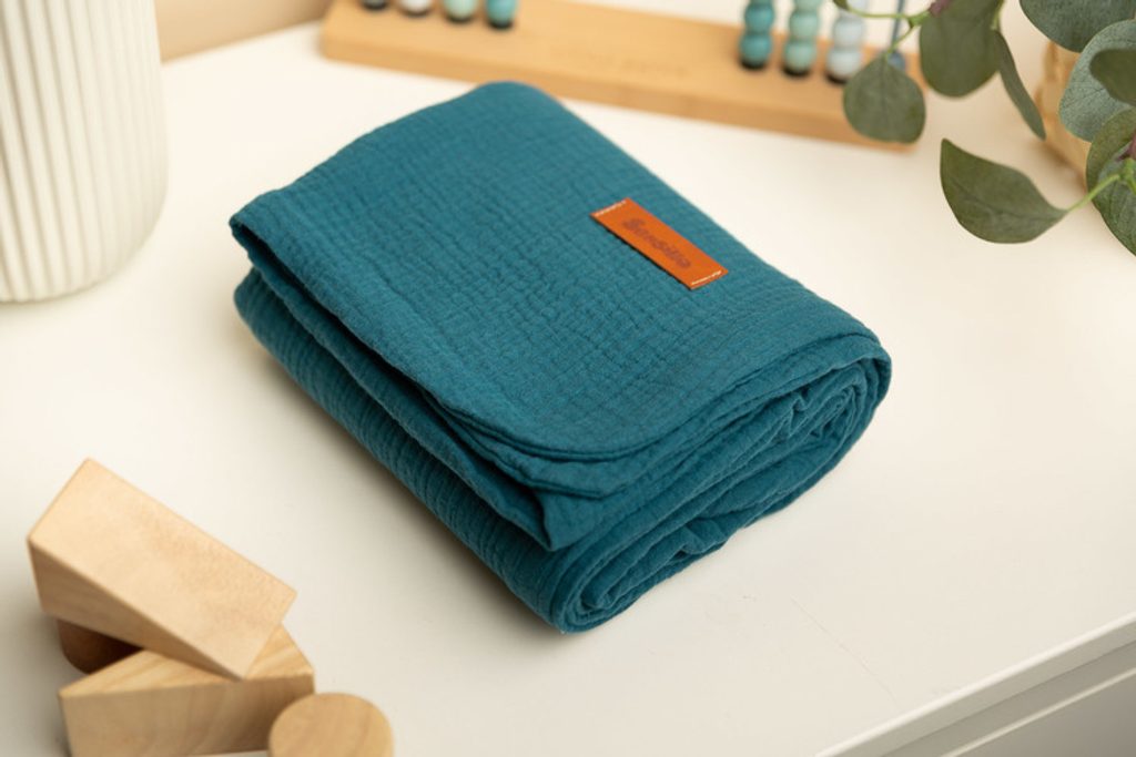 Mušelínová deka je vyrobena z kvalitní 100% bavlněné látky. Je vyrobena ze dvou vrstev bavlny, díky čemuž je lehká a vzdušná. Dobře poslouží při procházkách v teplých slunečných dnech, lze ji použít jako silnější zavinovačku, na každodenní hru nebo jako přikrývku při krmení. Jemná bavlna zajišťuje správnou cirkulaci vzduchu a také nedráždí a nedráždí dětskou pokožku. Další výhodou deky je krásná textura látky.