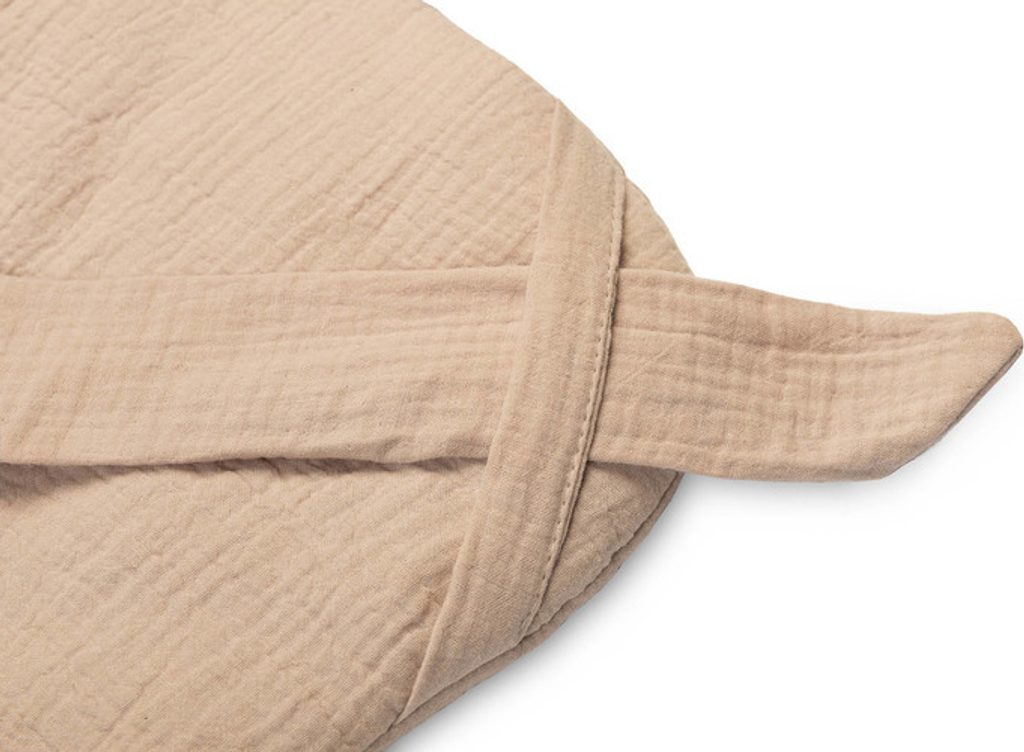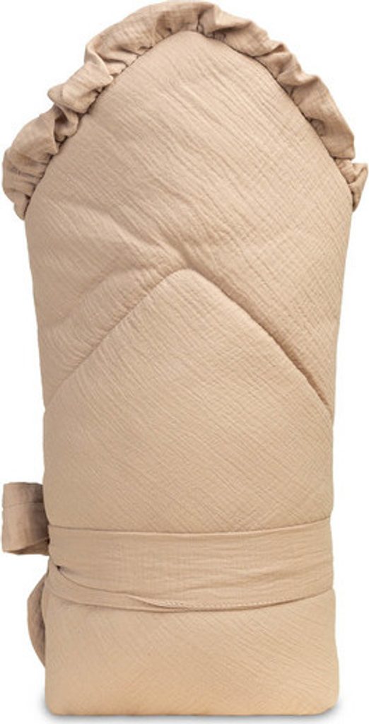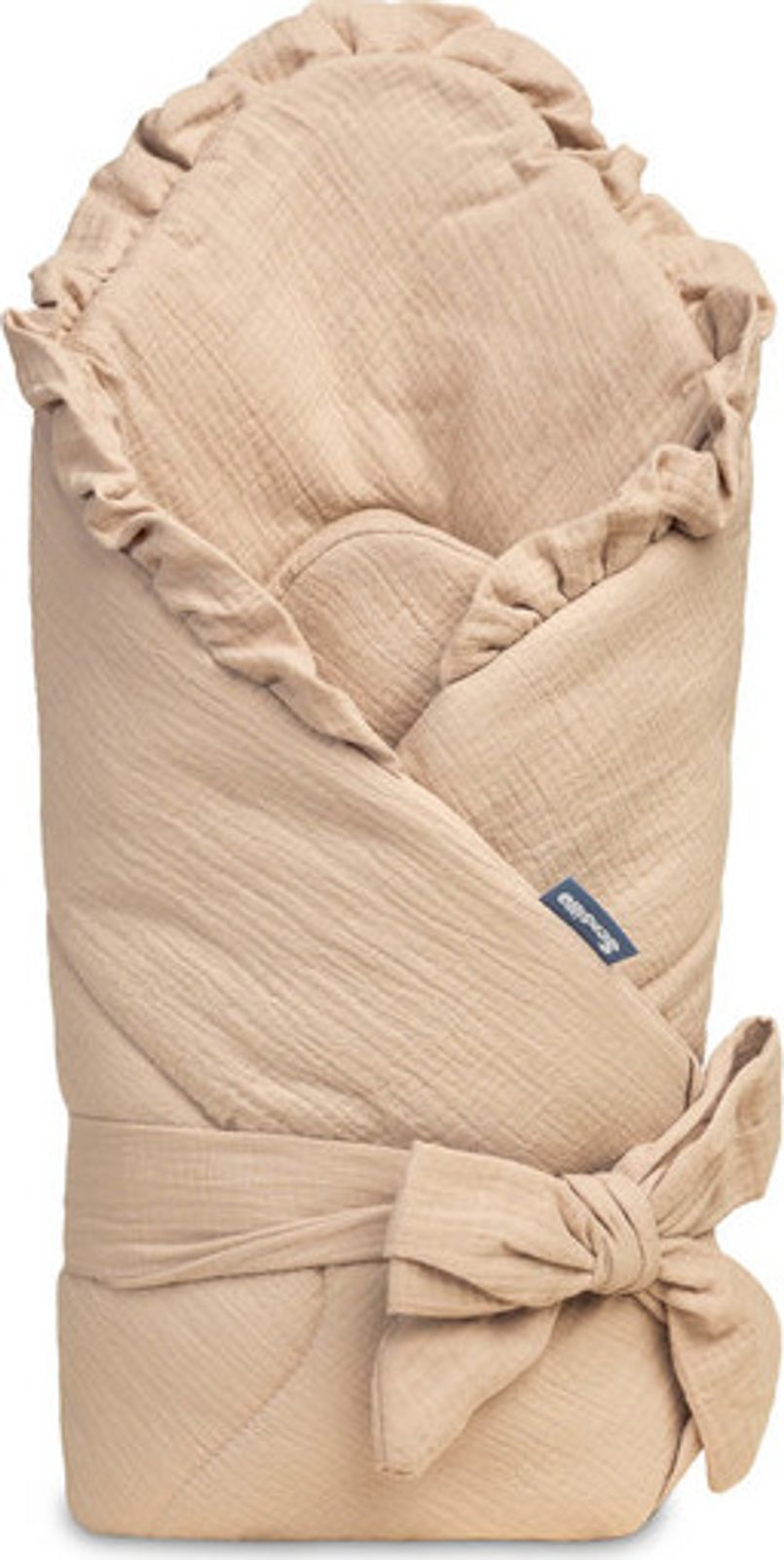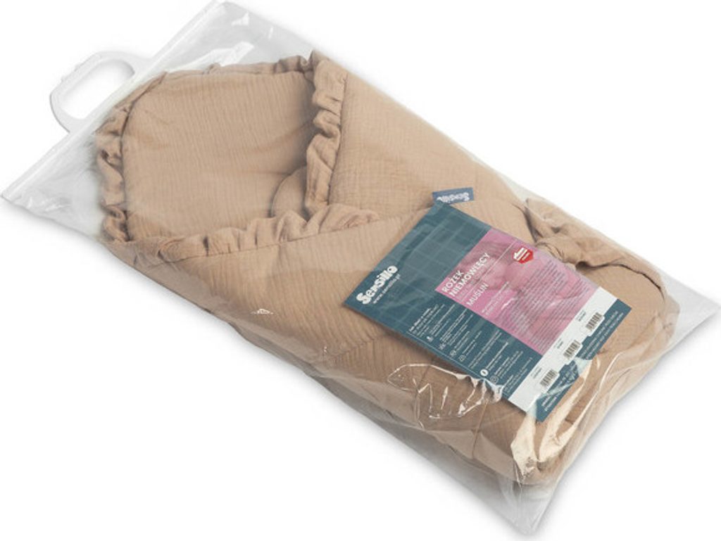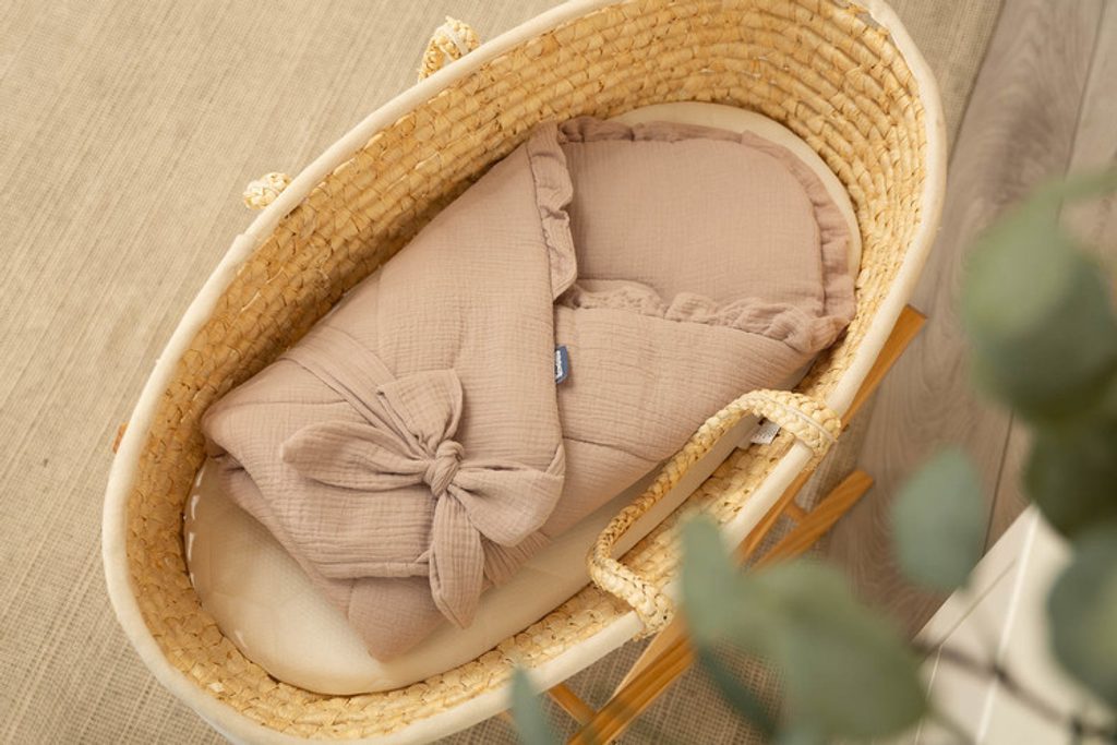 Oboustranná dětská zavinovačka byla vytvořena pro novorozence a kojence. Suchý zip umožňuje pohodlné držení dítěte při krmení a usínání. Po rozložení lze zavinovačka použít jako peřinka do postýlky nebo kočárku. Dá se použít i jako podložka na hraní. Byla vyrobena ze 100% bavlny. Zvenku i zevnitř má mušelín příjemný na dotek. Výplň tvoří nadýchaná silikonová netkaná textilie.