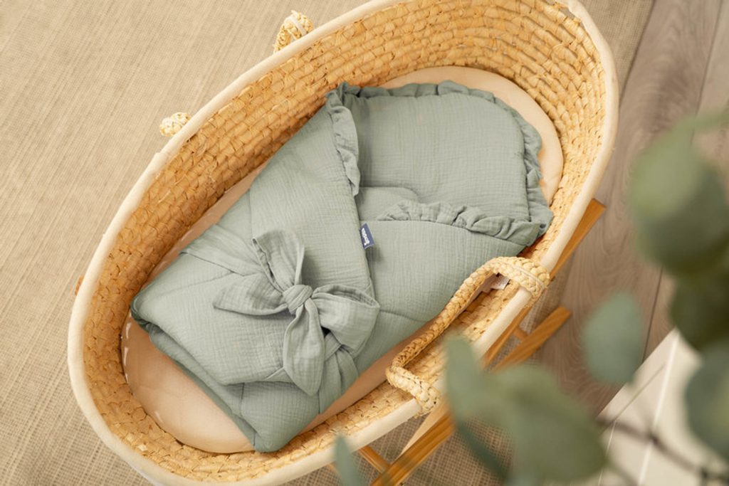 Dětská mušelínová zavinovačka vyrobena ze 100% bavlny.