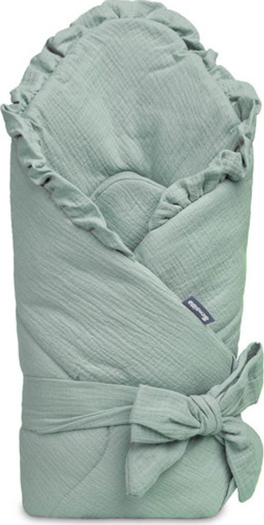 Oboustranná dětská zavinovačka byla vytvořena pro novorozence a kojence. Suchý zip umožňuje pohodlné držení dítěte při krmení a usínání. Po rozložení lze zavinovačka použít jako peřinka do postýlky nebo kočárku. Dá se použít i jako podložka na hraní. Byla vyrobena ze 100% bavlny. Zvenku i zevnitř má mušelín příjemný na dotek. Výplň tvoří nadýchaná silikonová netkaná textilie.