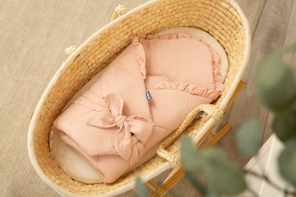 Oboustranná dětská zavinovačka byla vytvořena pro novorozence a kojence. Suchý zip umožňuje pohodlné držení dítěte při krmení a usínání. Po rozložení lze zavinovačka použít jako peřinka do postýlky nebo kočárku. Dá se použít i jako podložka na hraní. Byla vyrobena ze 100% bavlny. Zvenku i zevnitř má mušelín příjemný na dotek. Výplň tvoří nadýchaná silikonová netkaná textilie.