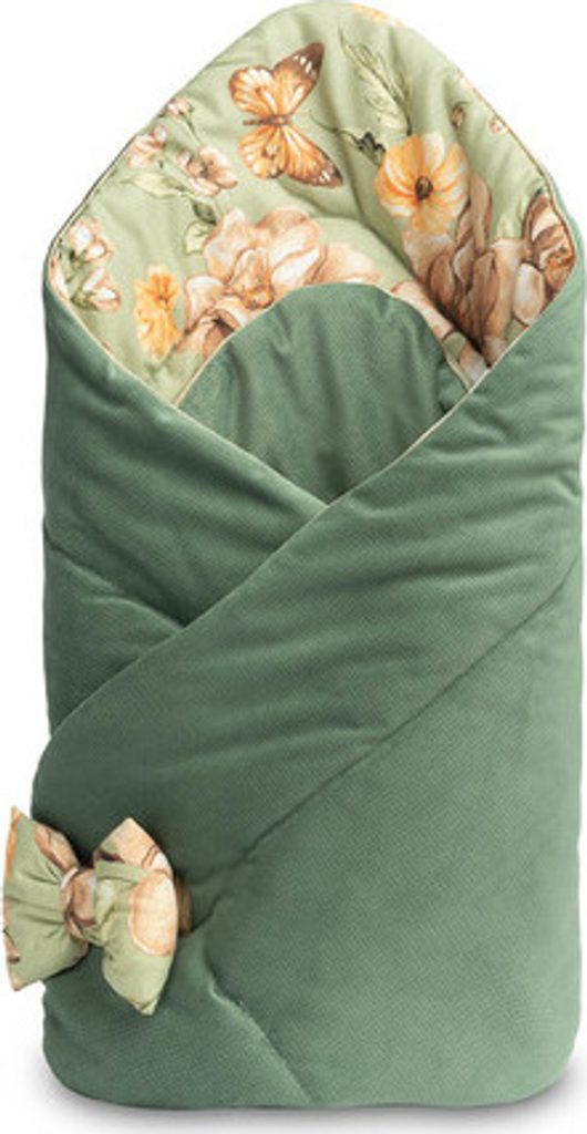 Oboustranná dětská zavinovačka Velvet byla vytvořena s ohledem na novorozence a kojence. Zapínání na suchý zip umožňuje pohodlné držení dítěte při krmení a uspávání. Po rozložení lze kornout úspěšně použít jako peřinku do postýlky nebo kočárku. Lze jej také použít jako podložku na hraní. Je vyrobena ze 100% bavlny a měkké sametové tkaniny. Výplň zavinovačky tvoří antialergické silikonové nadýchané rouno. Vysokou kvalitu zpracování podtrhuje estetické lemování.